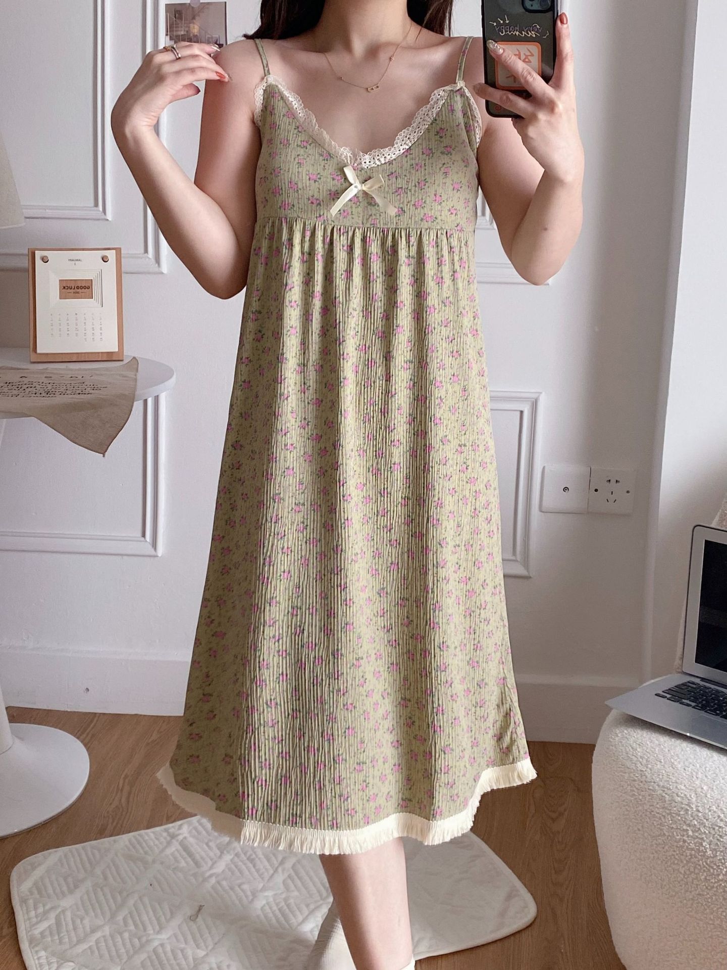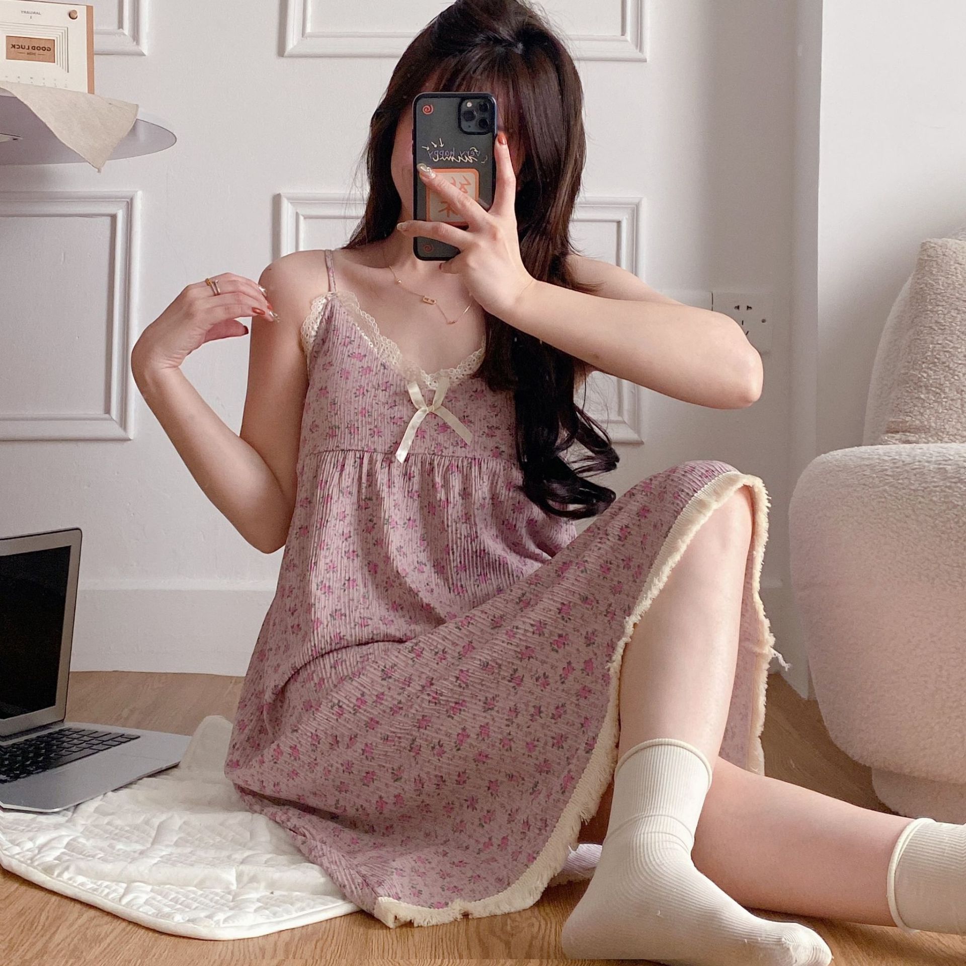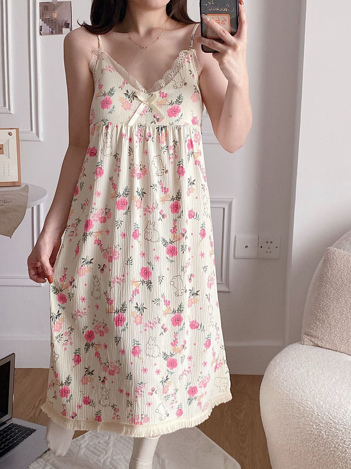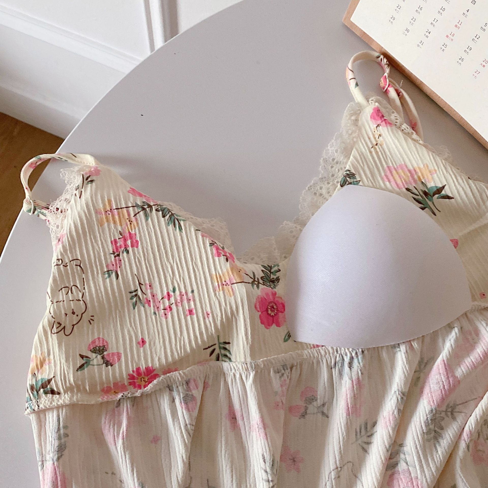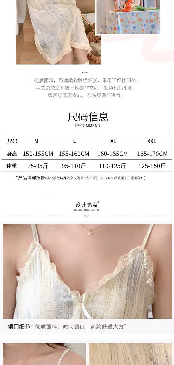 여성 슬립 온 나이트 드레스 가슴 패드 분리 가능한 버블 코튼 파자마 여성의 느슨한 달콤한 귀여운 홈웨어 여름 인기 스타일스토어 가기