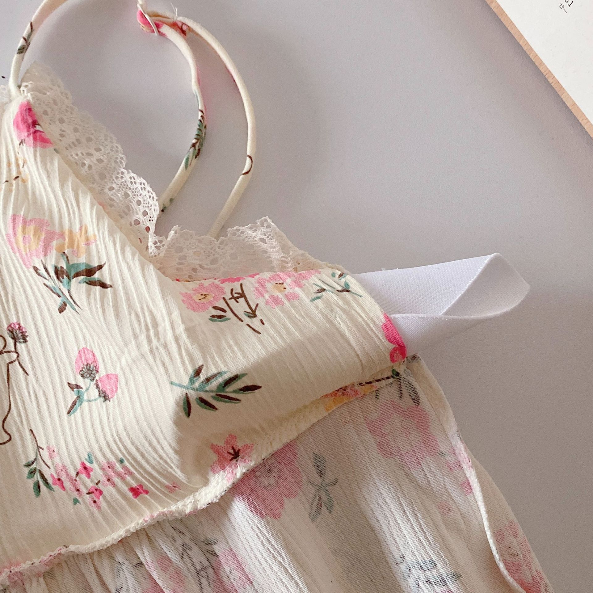 • 서스펜더 스커트 잉크 꽃 벨트 유방 패드 이동식