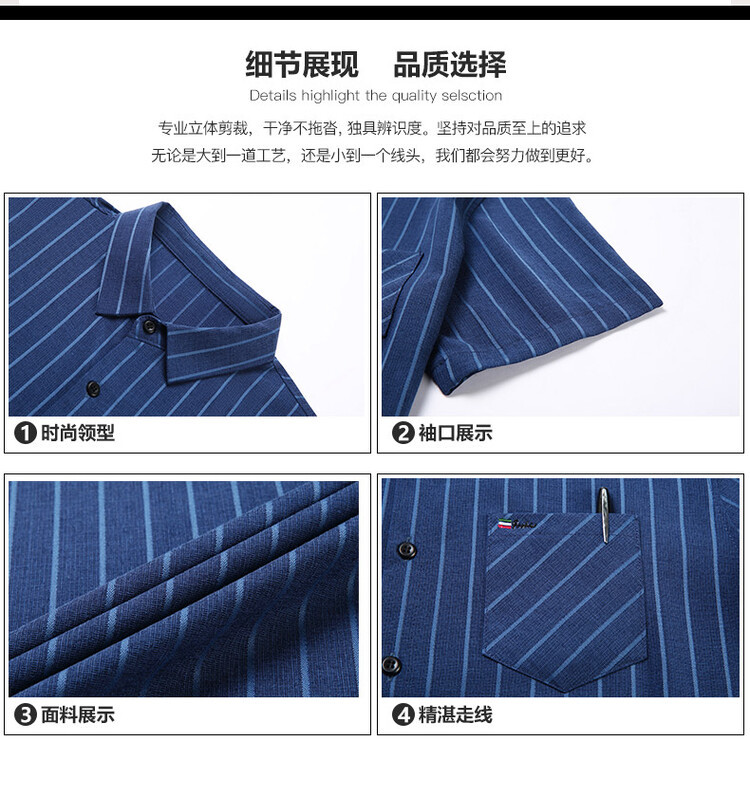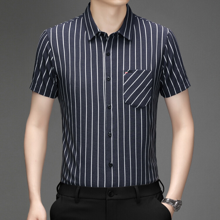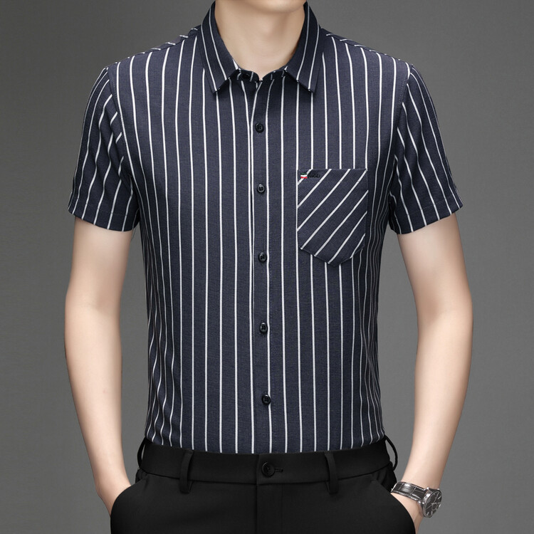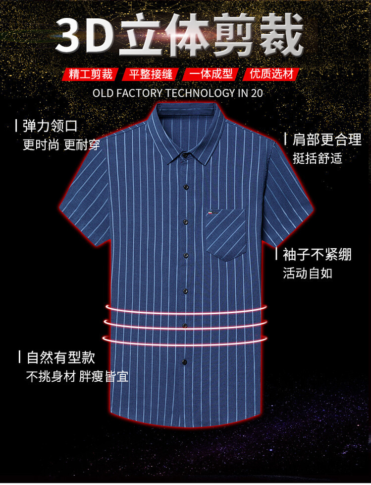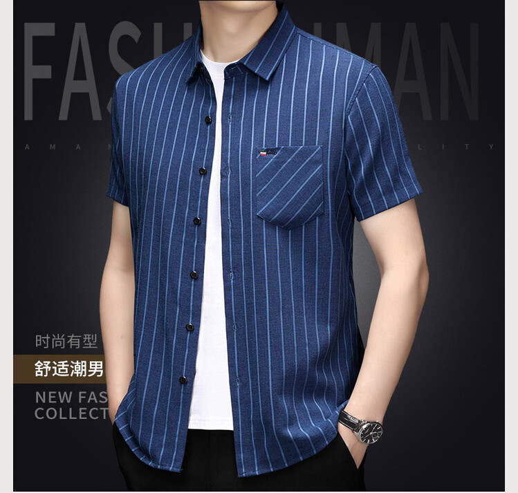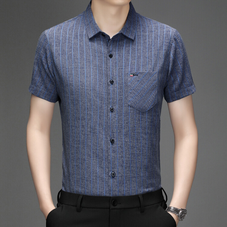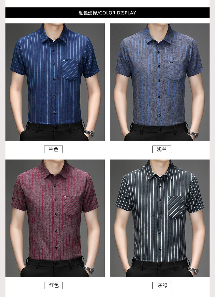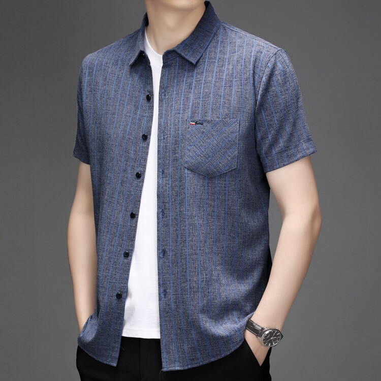 2024 젊고 중년 스트라이프 셔츠 남성용 반팔 여름 면화 수 놓은 캐주얼 비즈니스 다림질 중년 셔츠스토어 가기