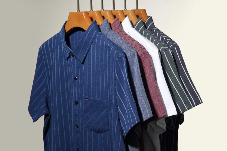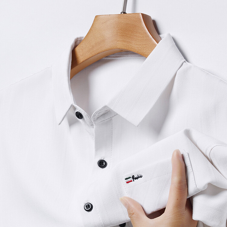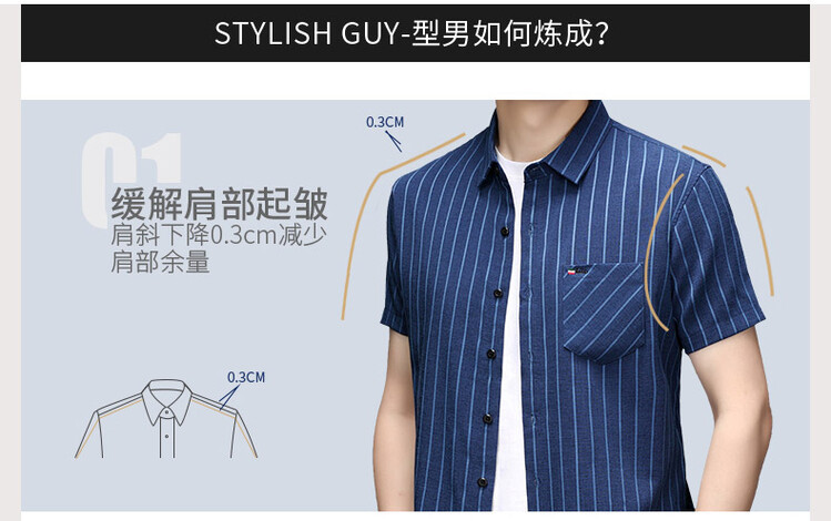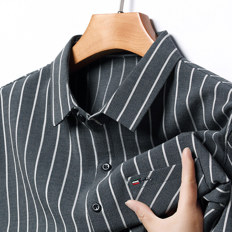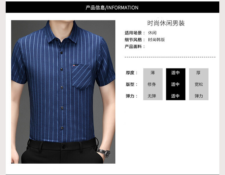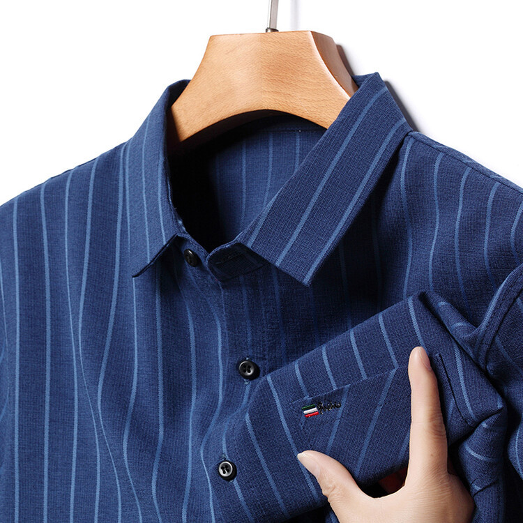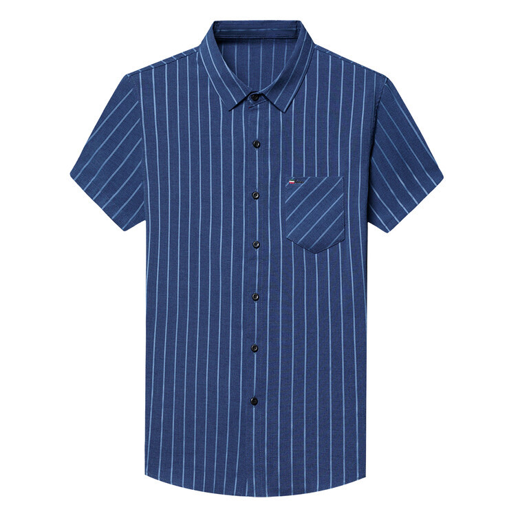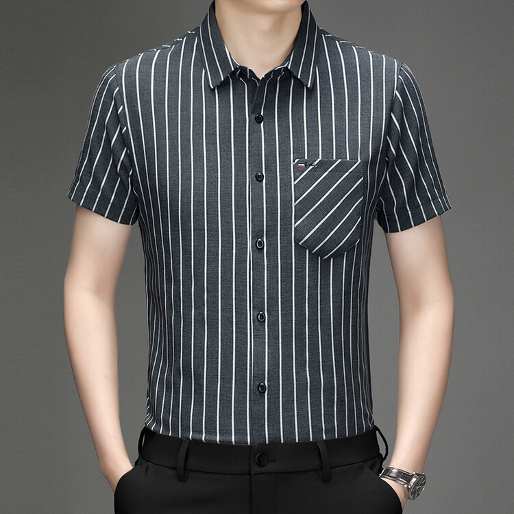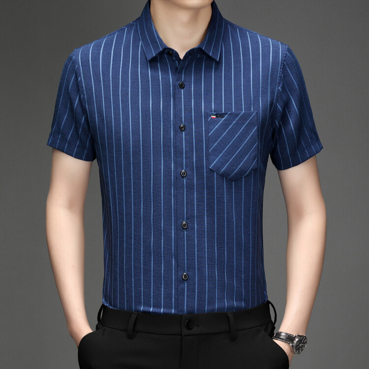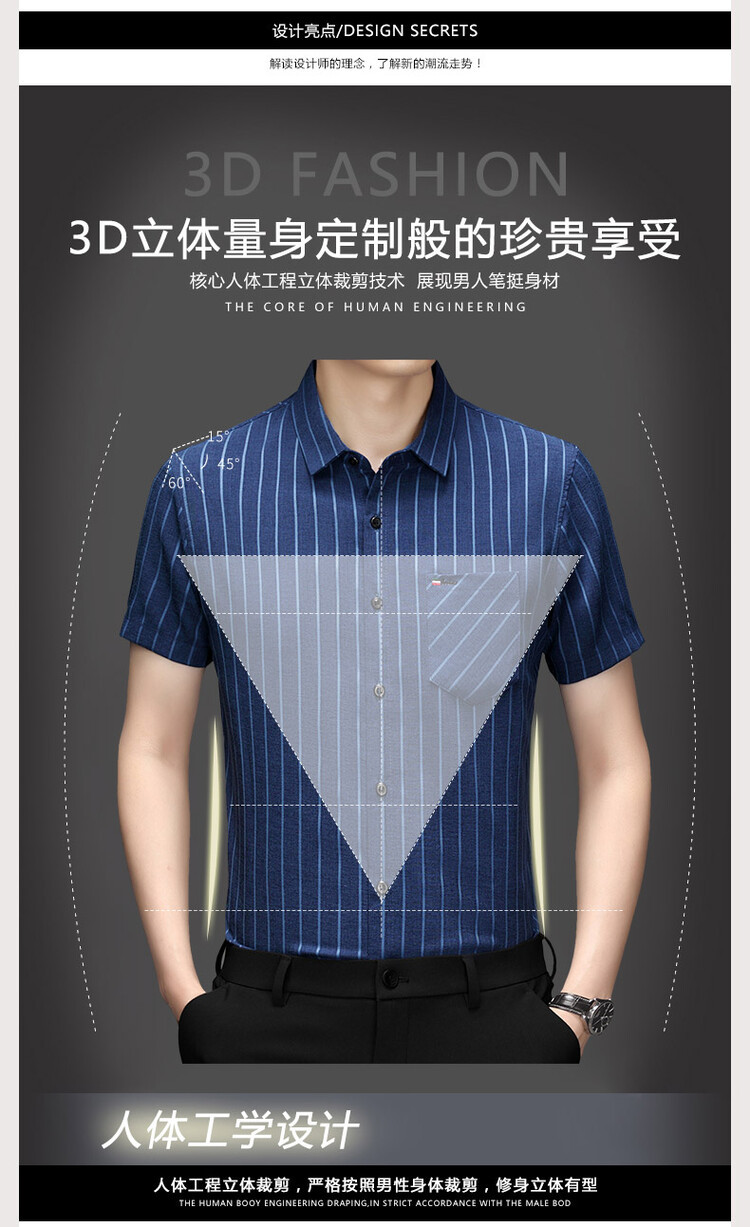 2024 젊고 중년 스트라이프 셔츠 남성용 반팔 여름 면화 수 놓은 캐주얼 비즈니스 다림질 중년 셔츠스토어 가기