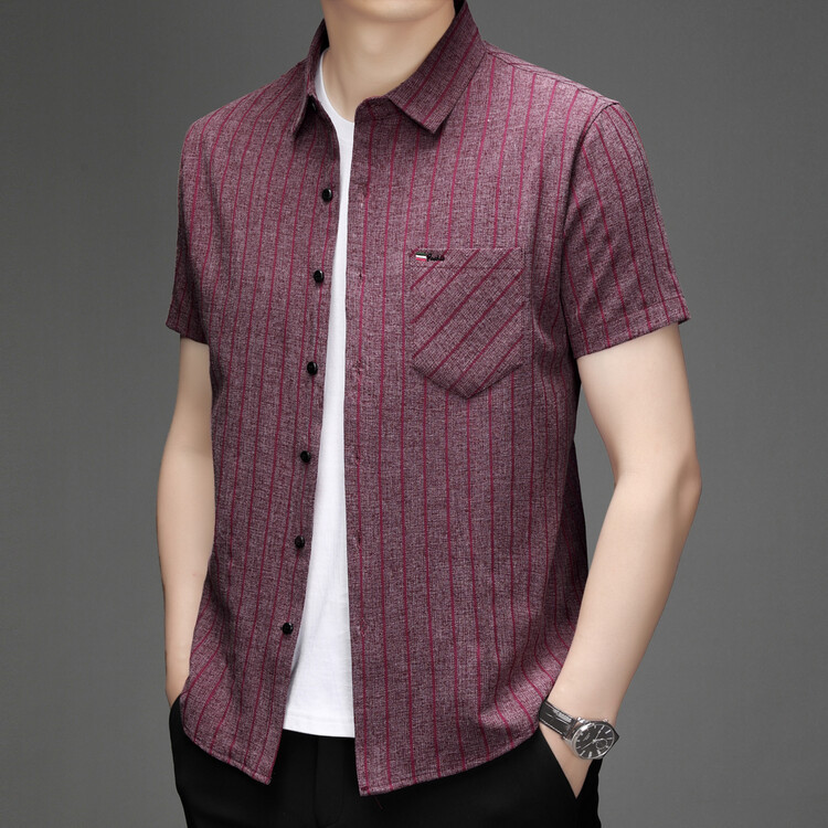 2024 젊고 중년 스트라이프 셔츠 남성용 반팔 여름 면화 수 놓은 캐주얼 비즈니스 다림질 중년 셔츠