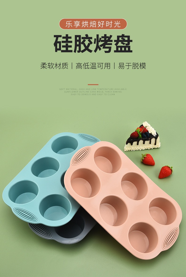 공장 도매 실리콘 케이크 금형 6 심지어 구멍 빵 금형 라운드 베이킹 케이크 비스킷 베이킹 트레이 베이킹 금형스토어 가기