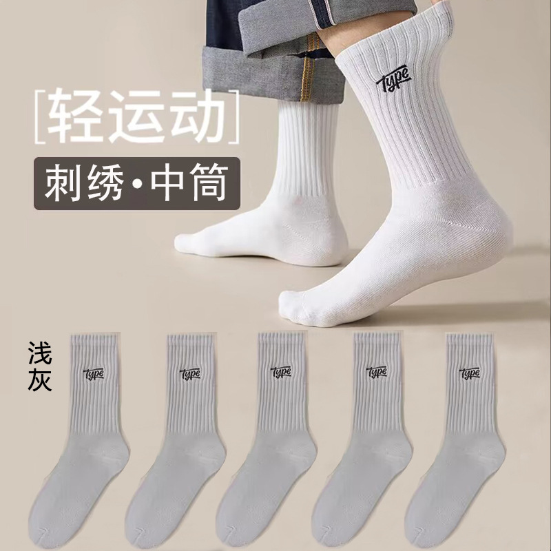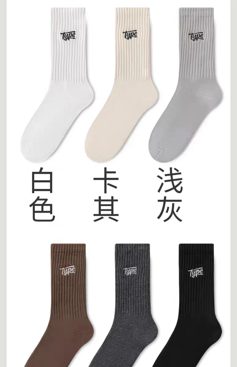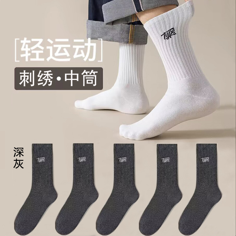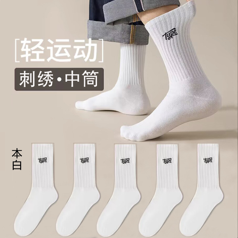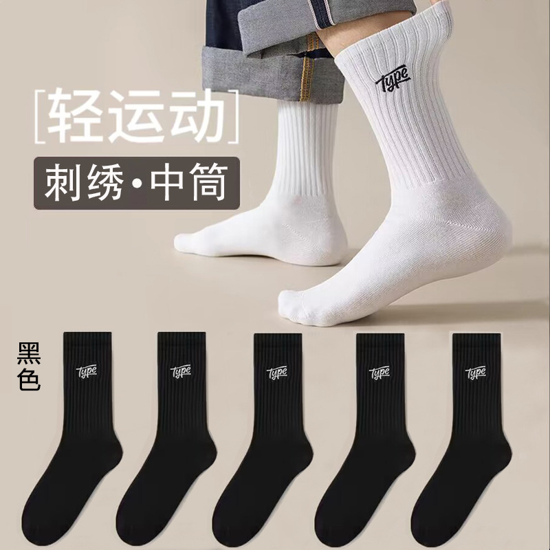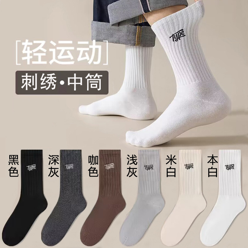 남자 중간 송아지 길이 양말 봄 얇은 단색면 양말 한국식 자수 편지 남성 양말 유행 농구 스포츠 양말 도매