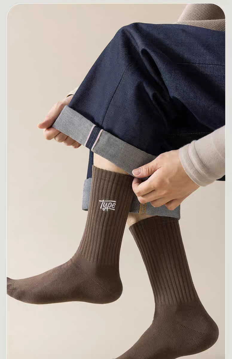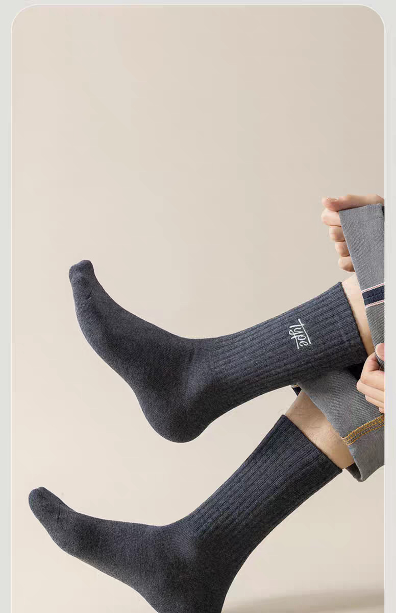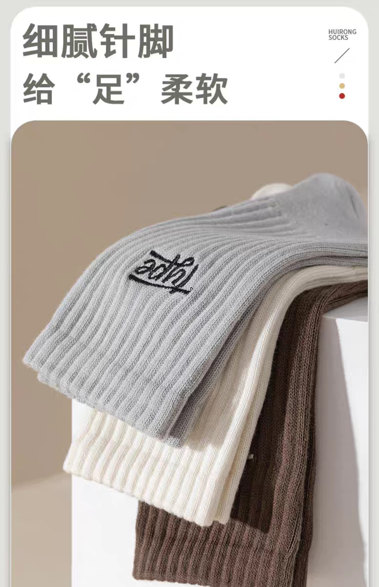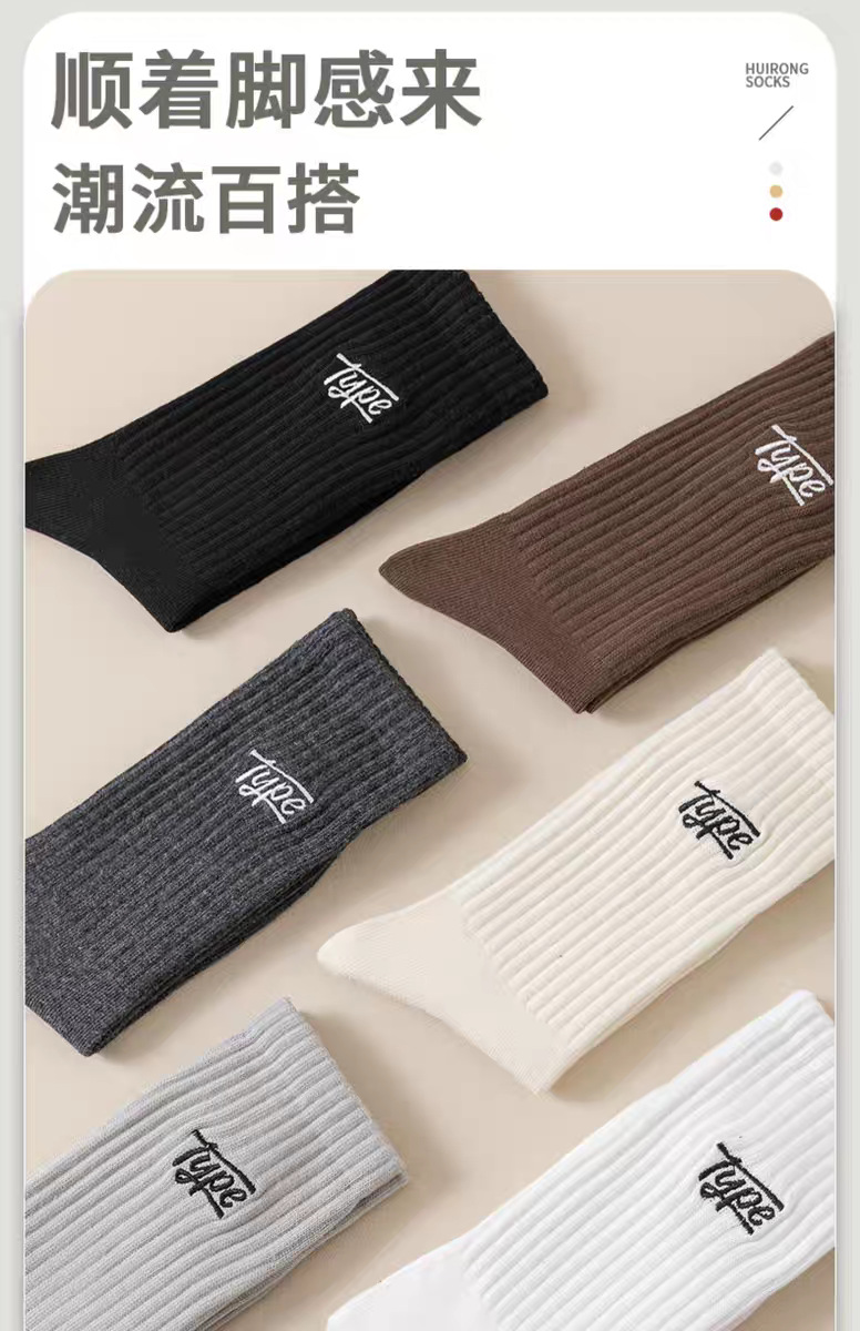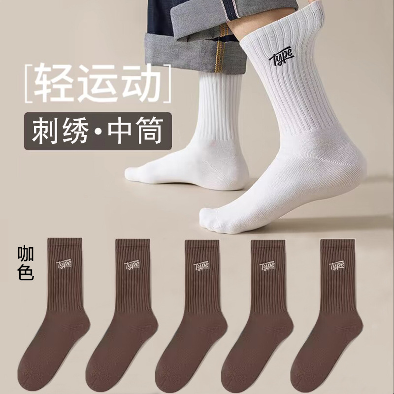 남자 중간 송아지 길이 양말 봄 얇은 단색면 양말 한국식 자수 편지 남성 양말 유행 농구 스포츠 양말 도매