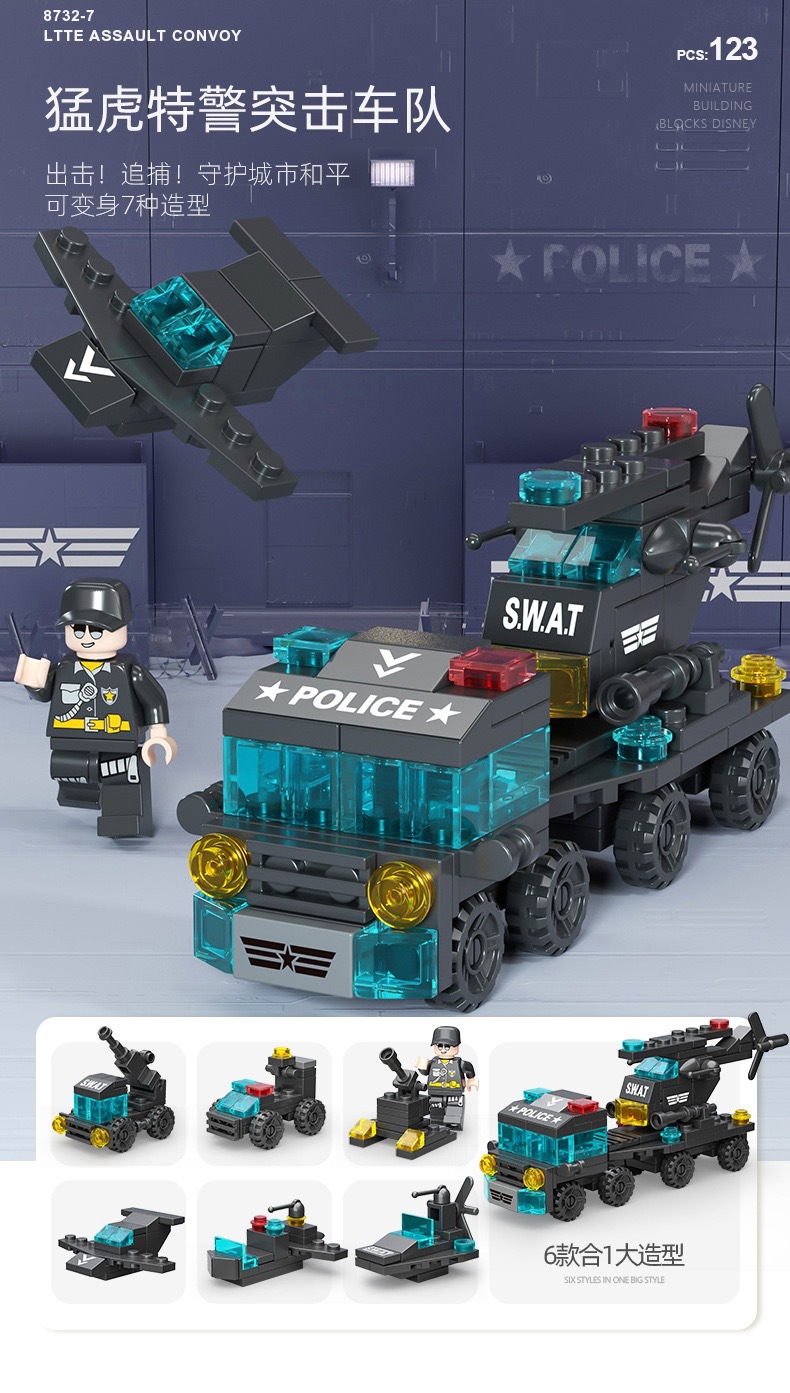 Lele 형제 작은 입자 빌딩 블록 화재 특별 경찰 구급차 창조적 인 퍼즐 조립 어린이 소년 장난감 도매