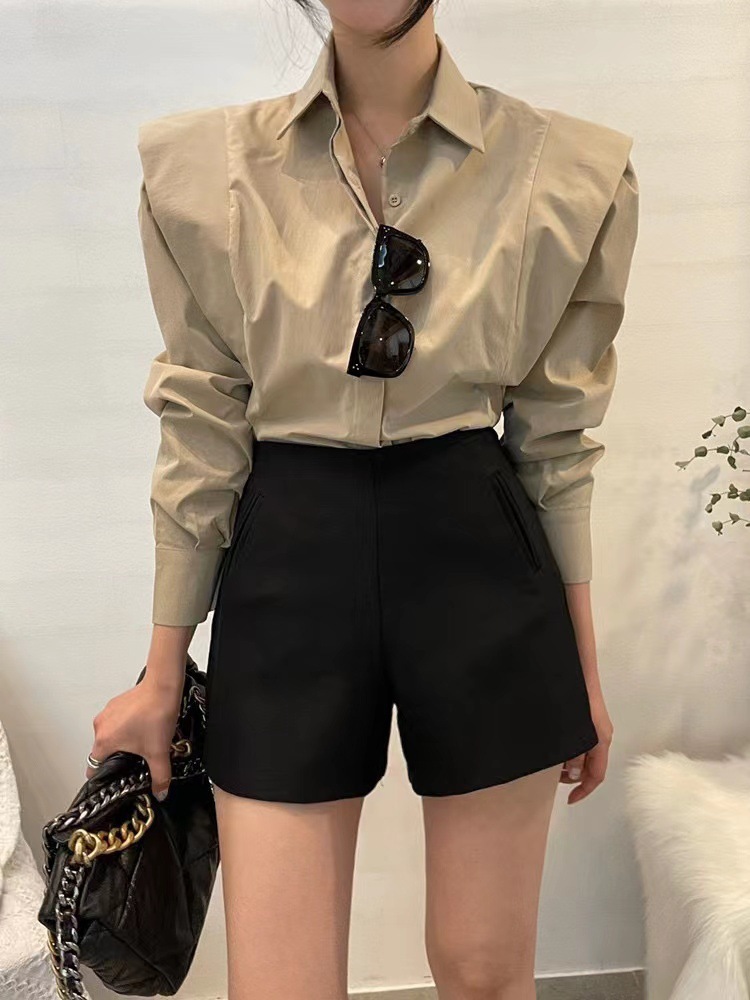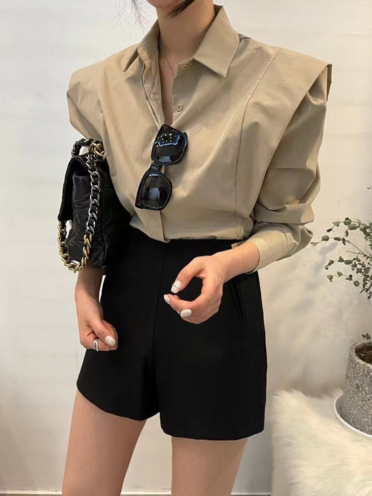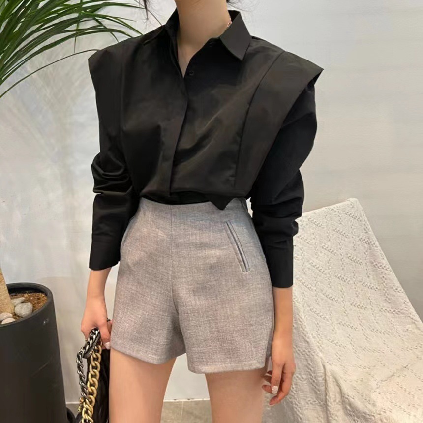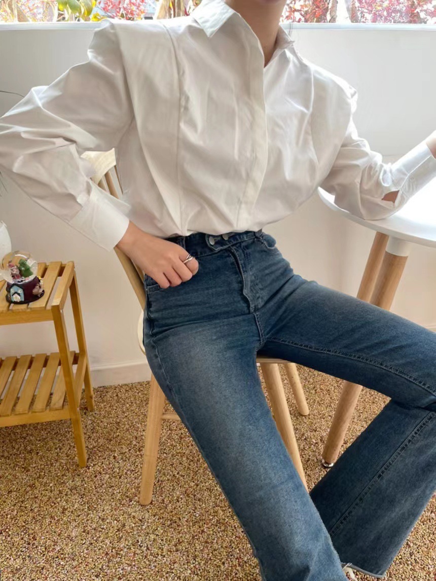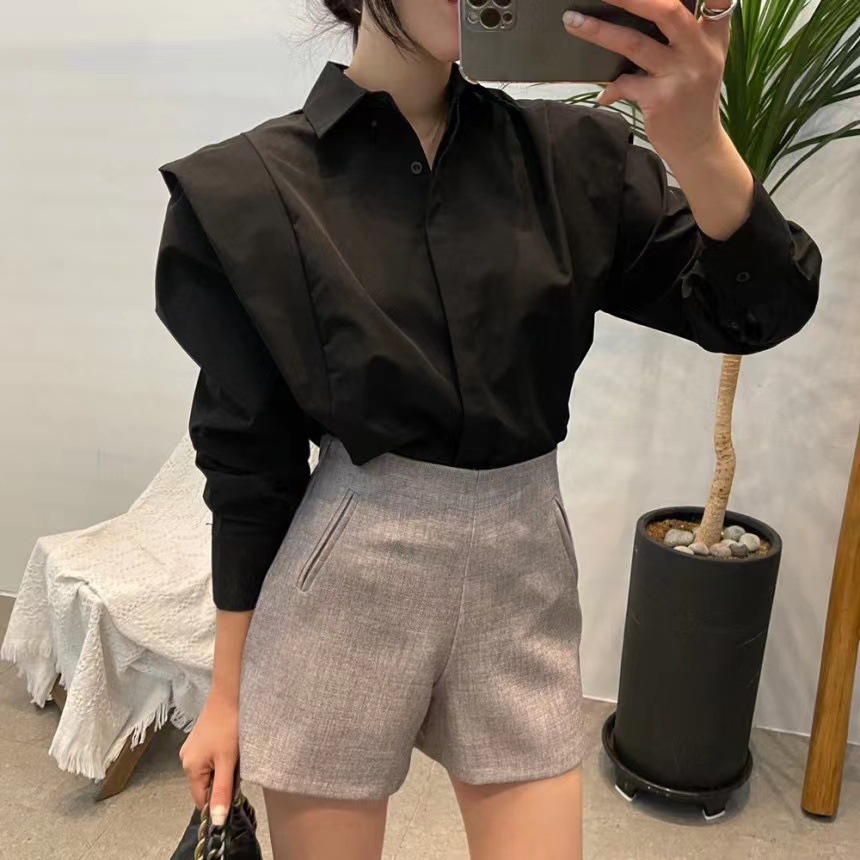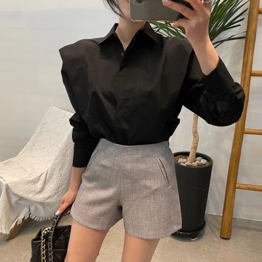 한국 2024 가을 빈티지 간단한 옷깃 숨겨진 버튼 디자인 바느질 루프 긴 소매 셔츠 최고 여성스토어 가기