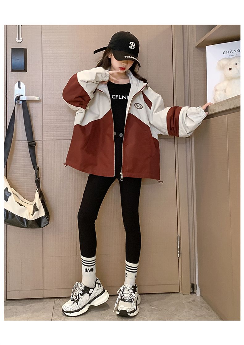 소녀 코트 2024 봄과 가을 새로운 한국 스타일 어린이 서양식 후드 윈드 브레이커 유행 컬러 매칭 재킷 겉옷스토어 가기