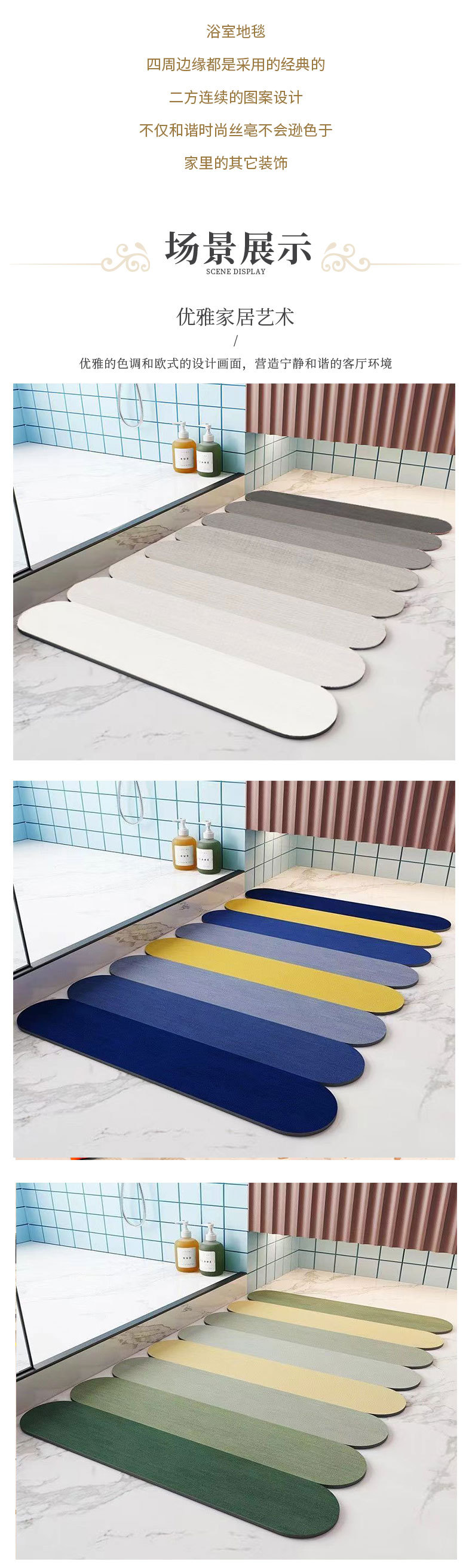 새로운 홈 욕실 바닥 매트 diatom 진흙 부드러운 매트 흡수성 빠른 건조 바닥 매트 욕실 얼룩 방지 미끄럼 방지 줄무늬 바닥 매트