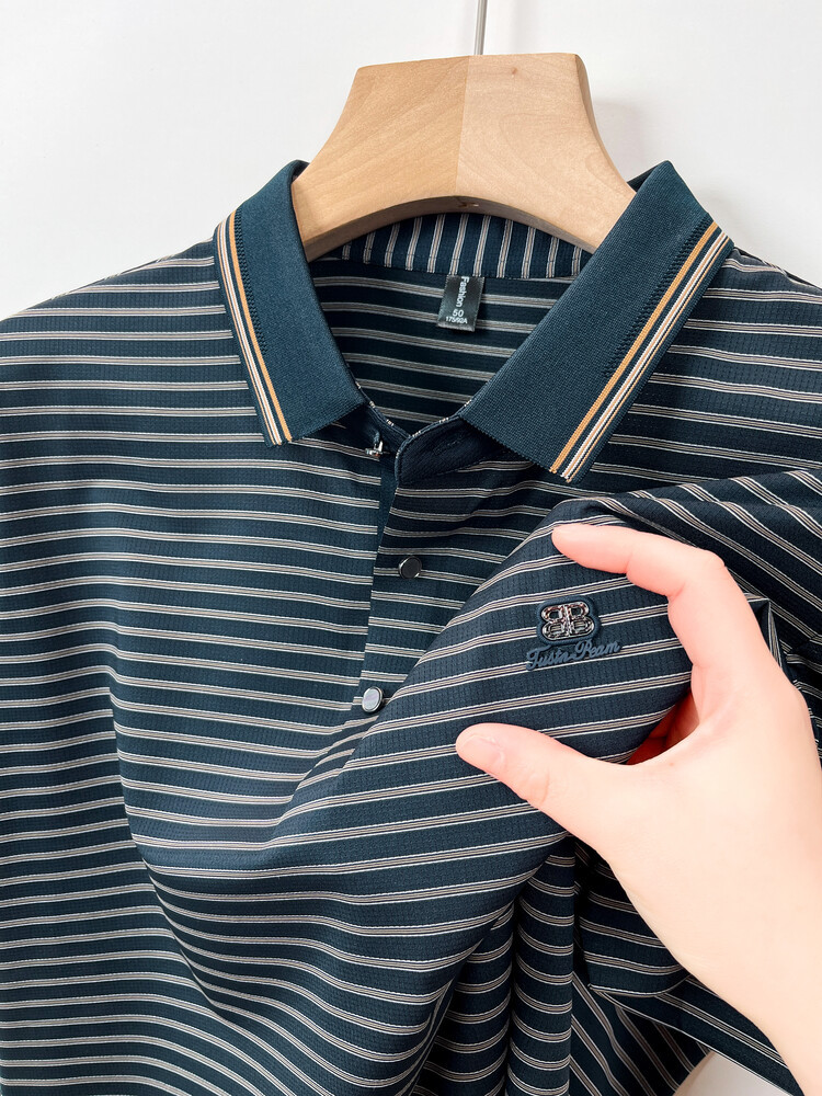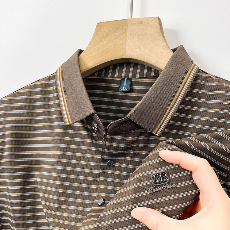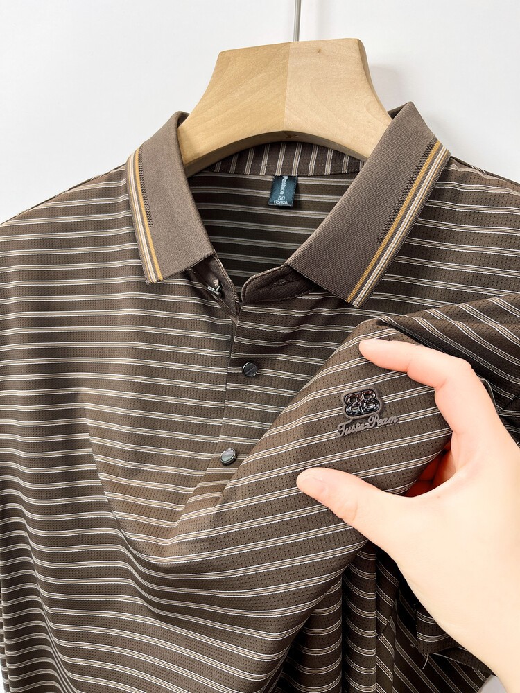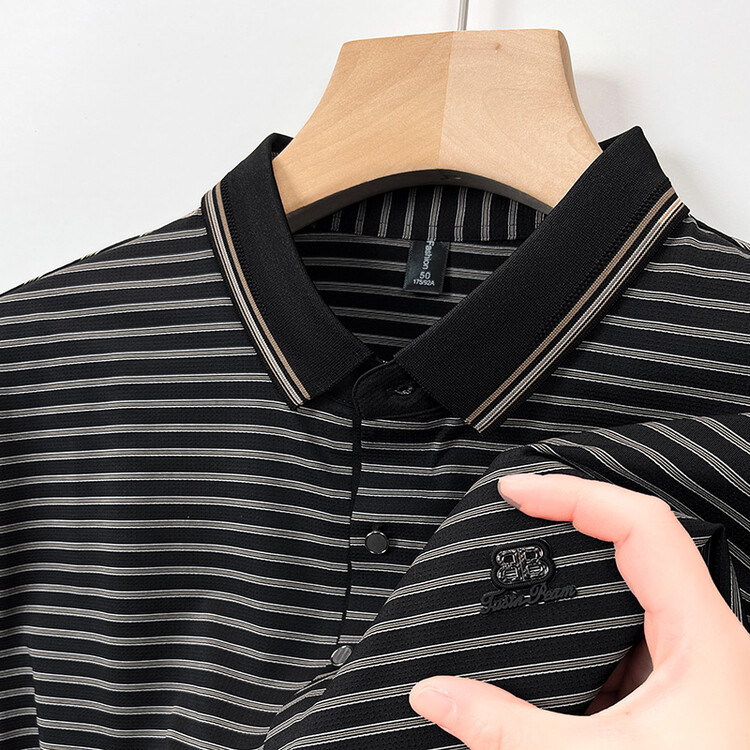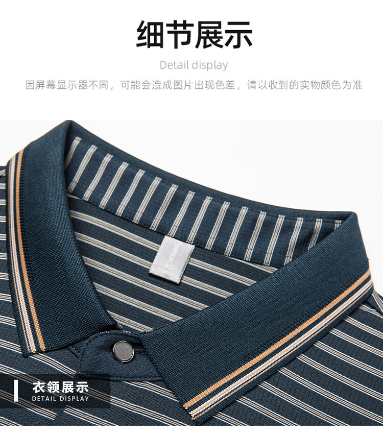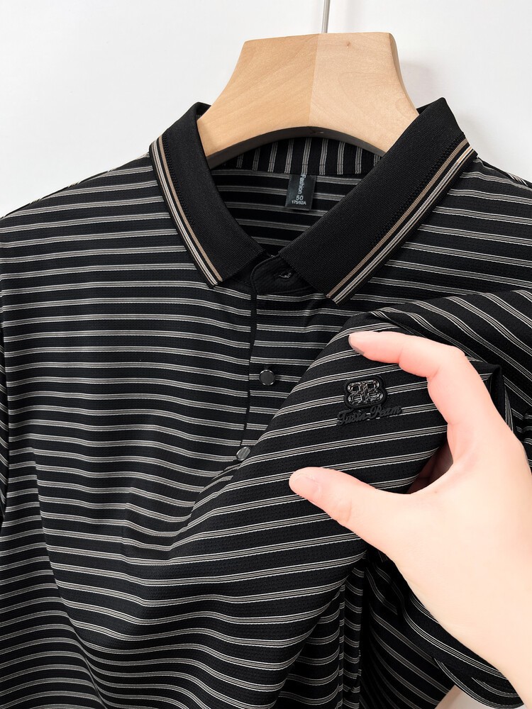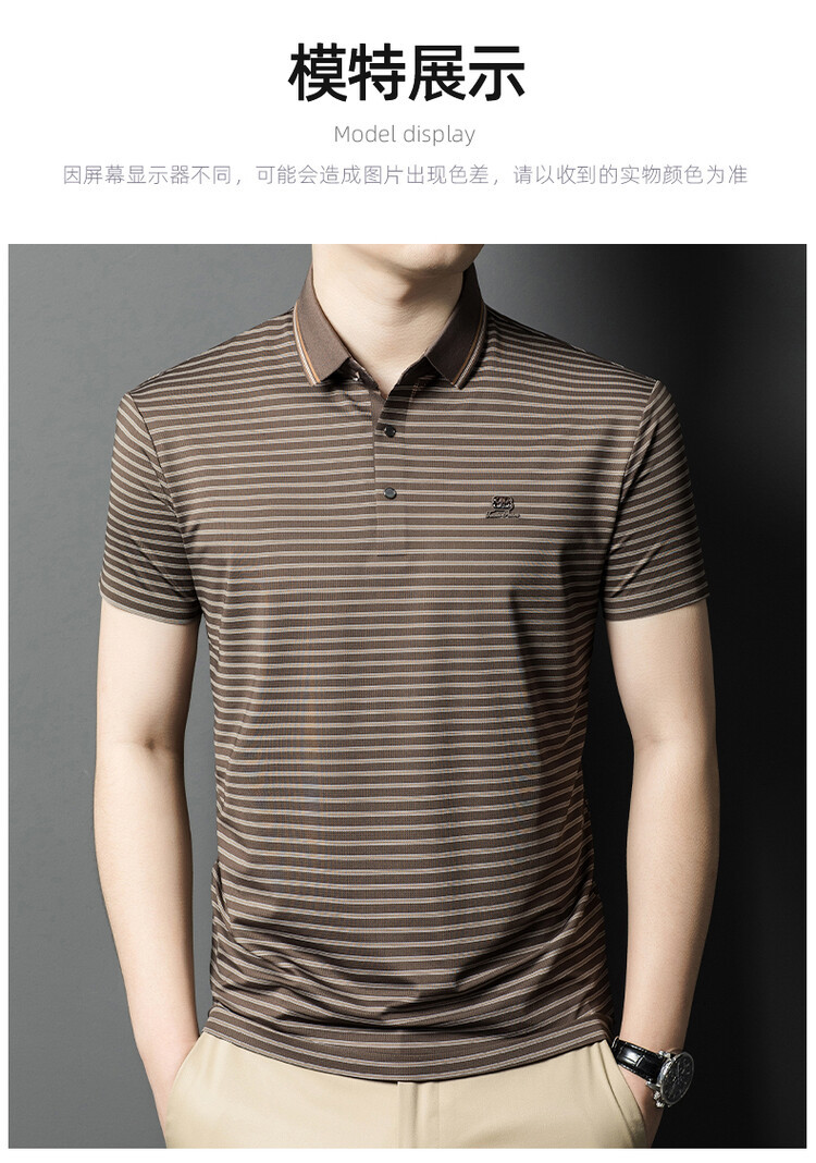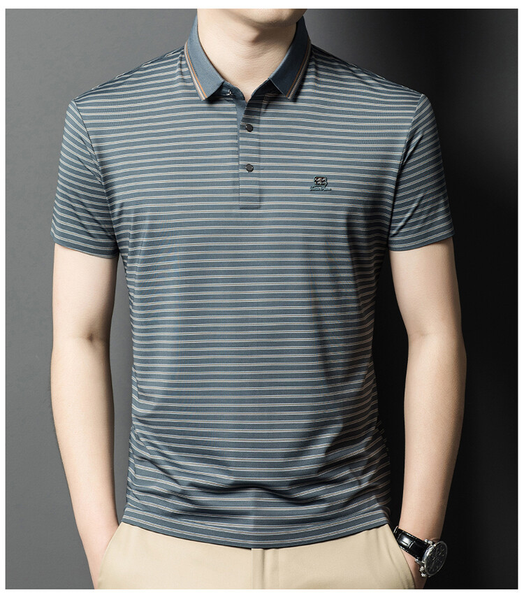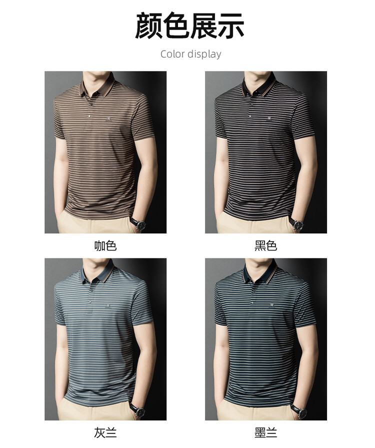 젊고 중년의 하이 엔드 프린트 스트라이프 반팔 티셔츠 남성 여름 하이 엔드 비즈니스 셔츠 칼라 폴로 셔츠 2024 뉴스토어 가기