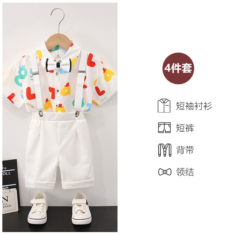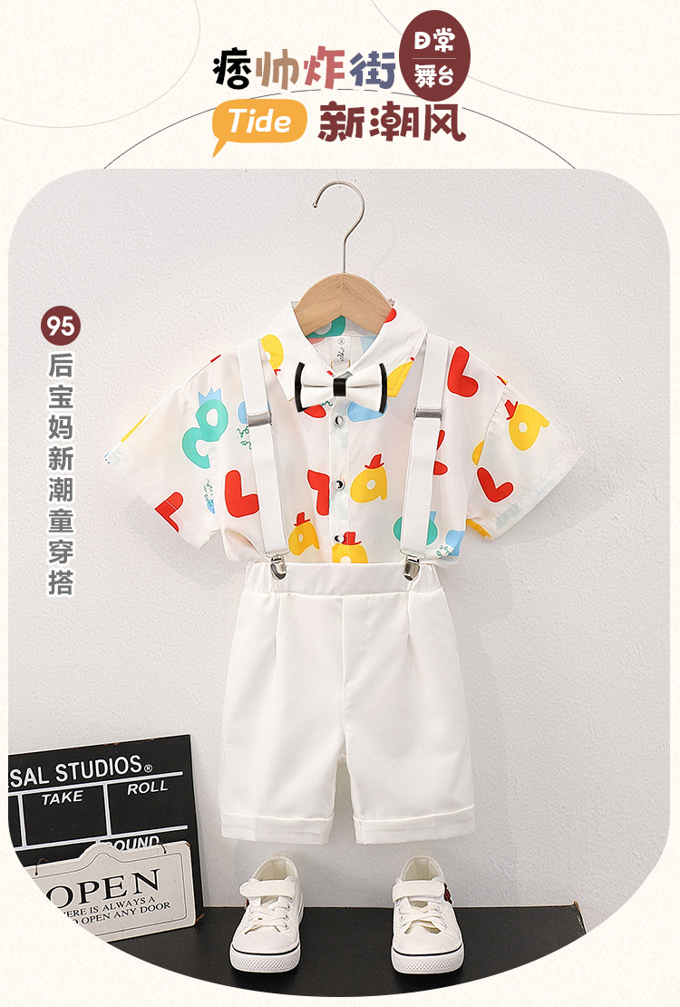 어린이 의류 공장 소년 꽃 무늬 셔츠 반팔 서스펜더 바지 세트 어린이 날 원피스 셔츠 ruoshuai 아기 소년