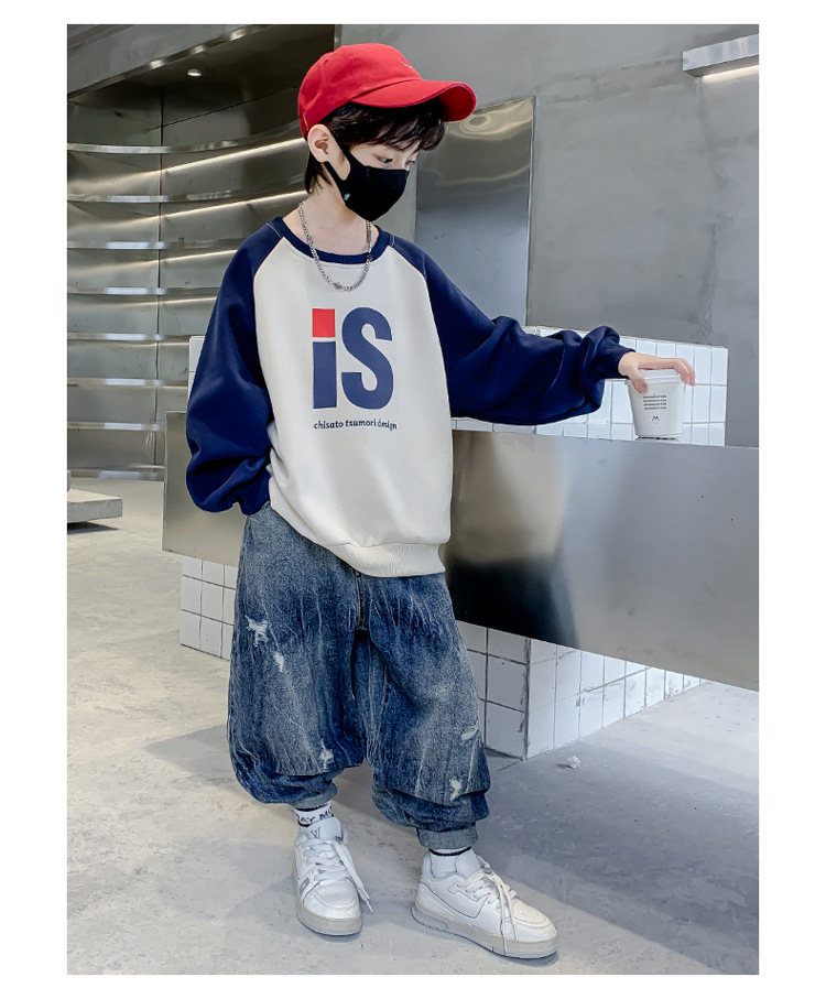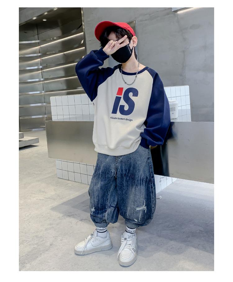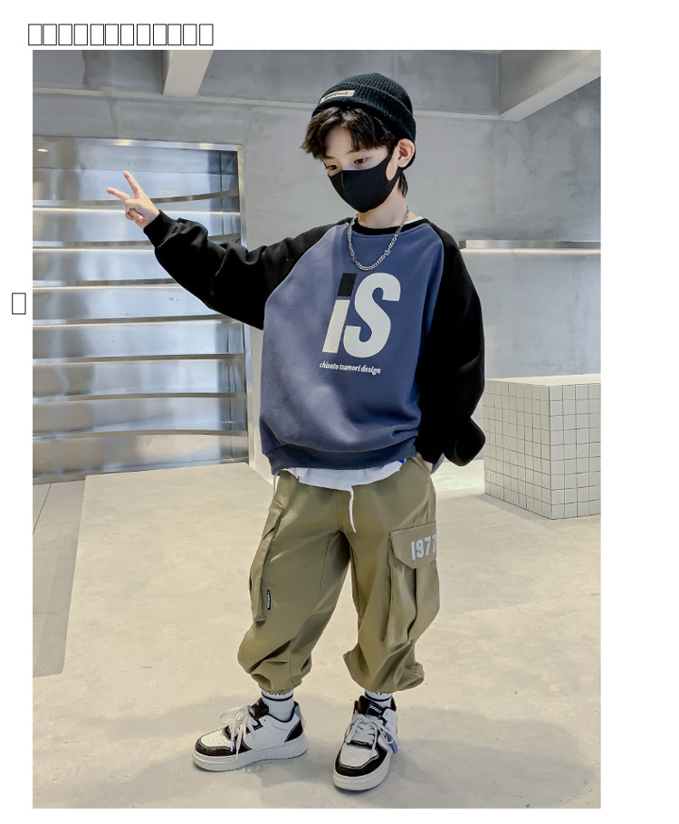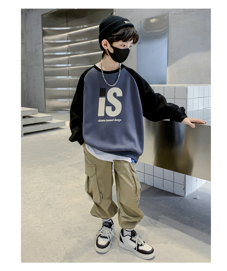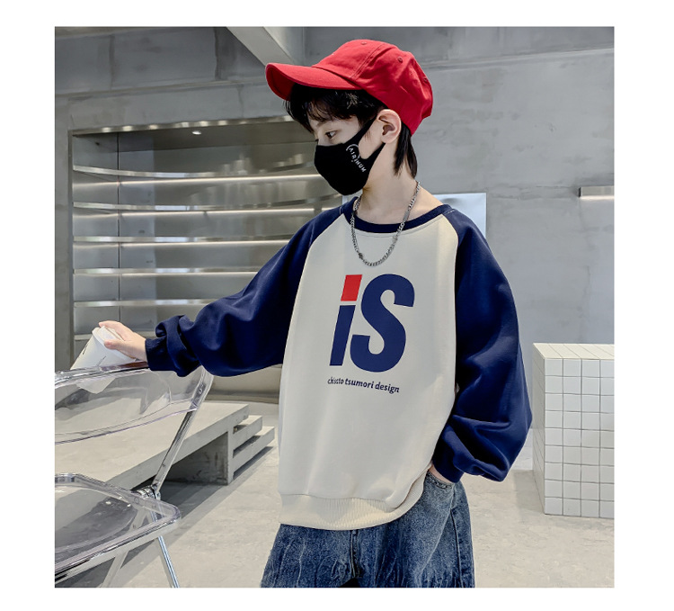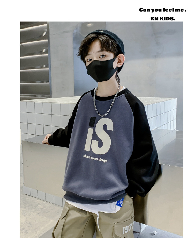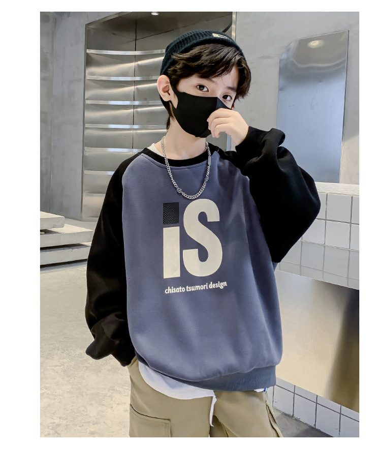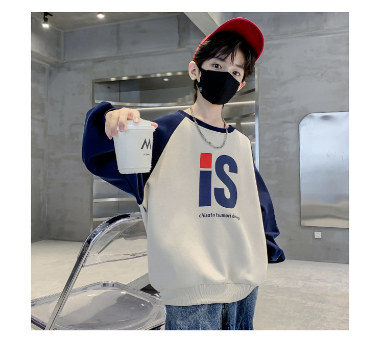 도매 소년의 세련된 잘 생긴 캐주얼 스웨터 중 큰 어린이 봄과 가을 바느질 풀오버 탑 영어 긴팔 티셔츠스토어 가기
