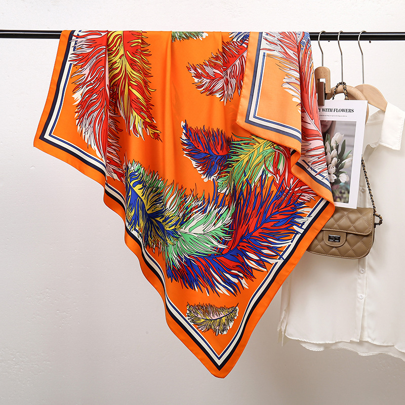 인도 스타일 다채로운 깃털 트윌 스카프 100cm 큰 사각형 스카프 대외 무역 민족 여성 바오 터우 스카프