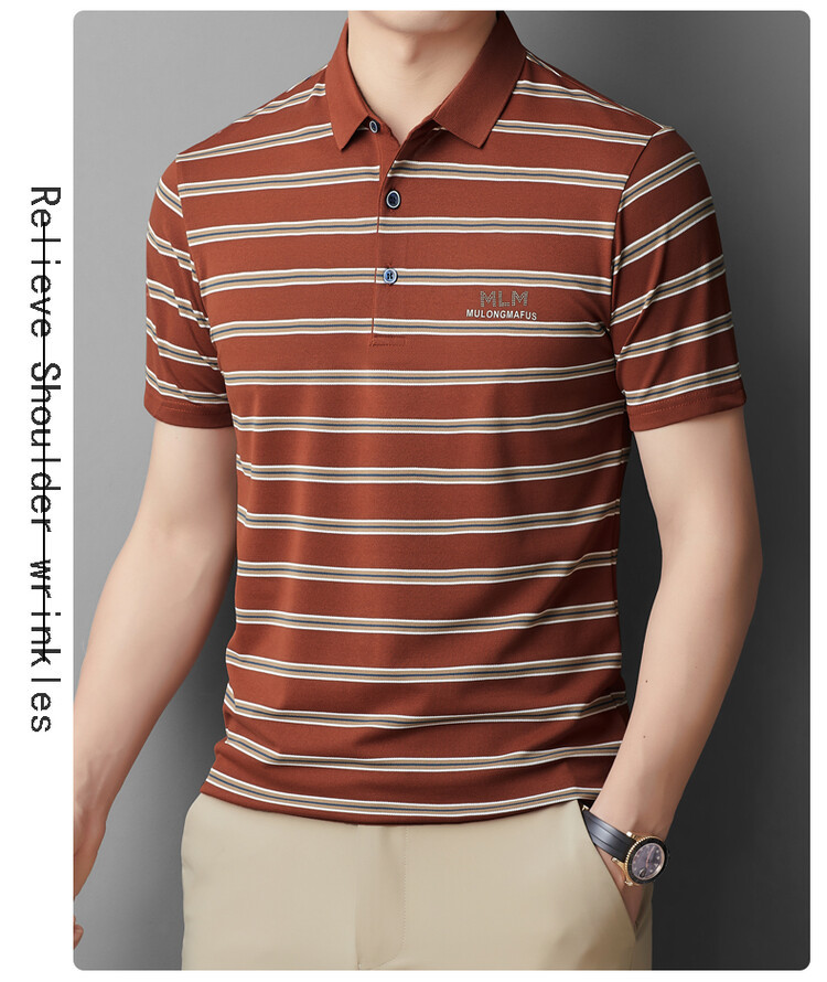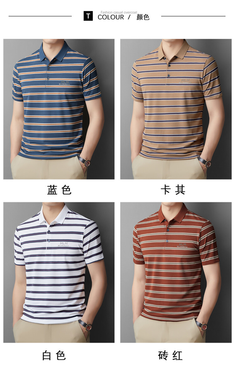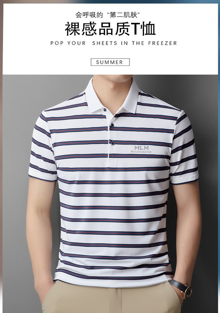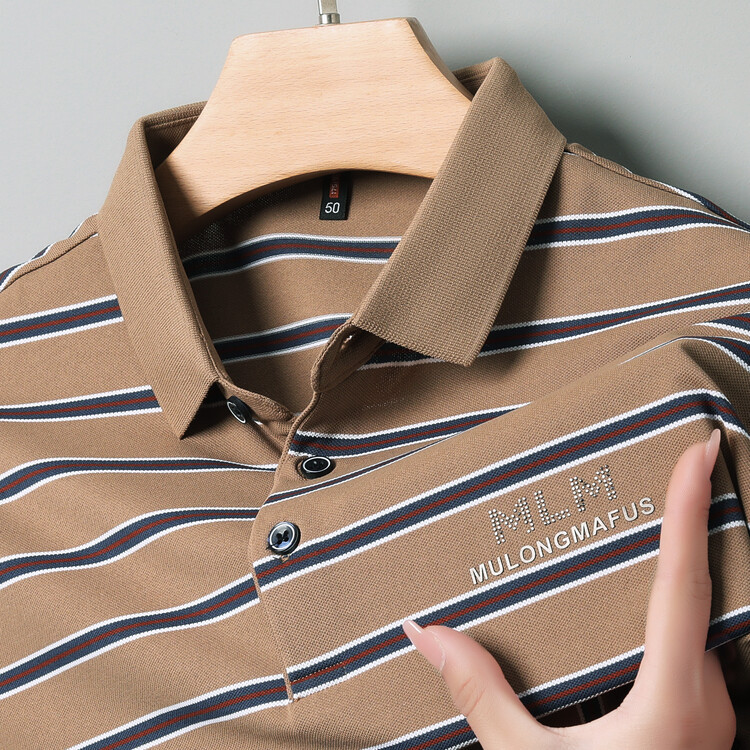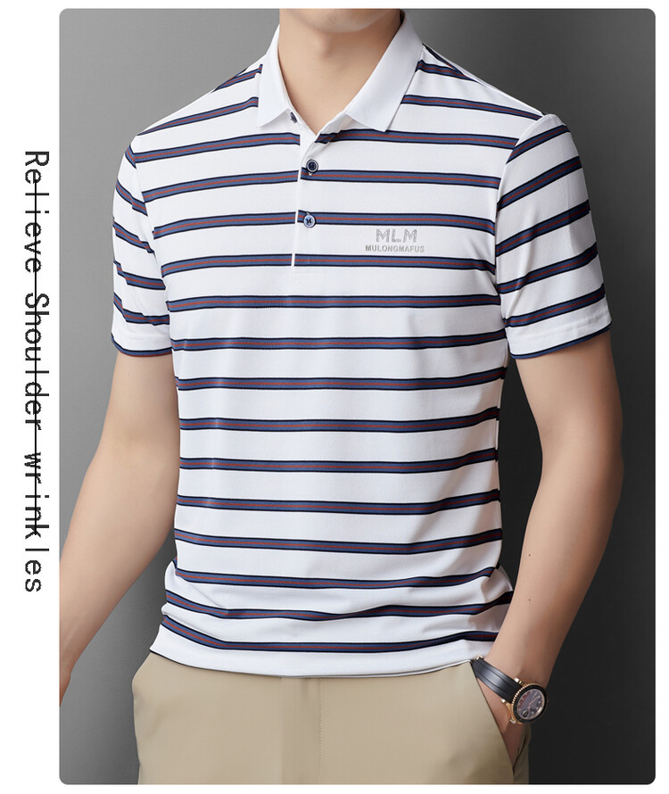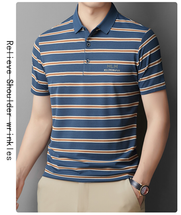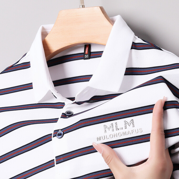 젊고 중년의 고급 스트라이프 라인석 반팔 티셔츠 남성용 여름 고급 비즈니스 셔츠 칼라 폴로 셔츠 2024 뉴스토어 가기