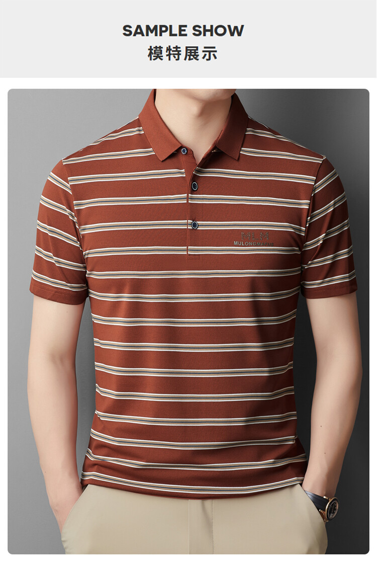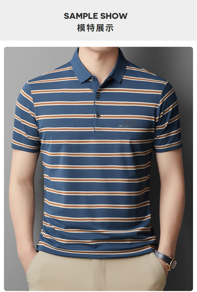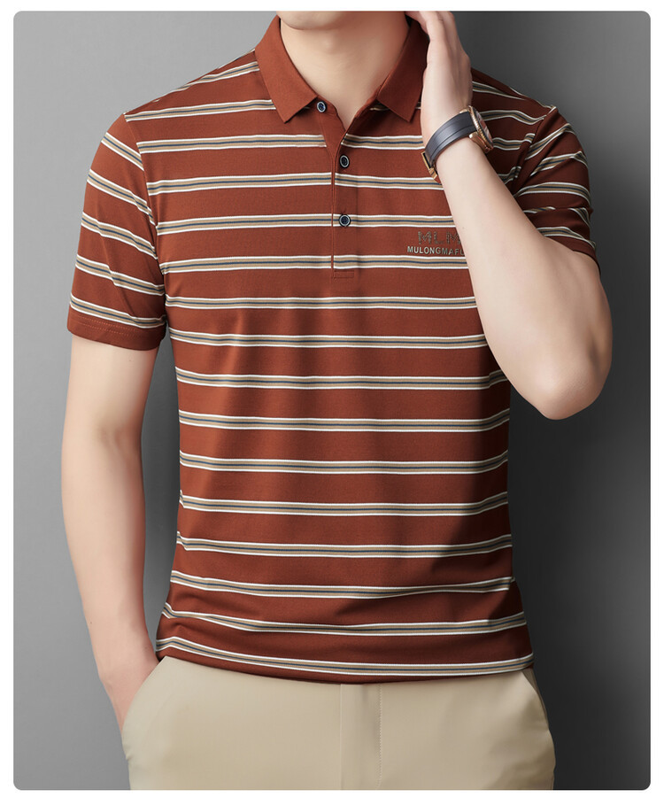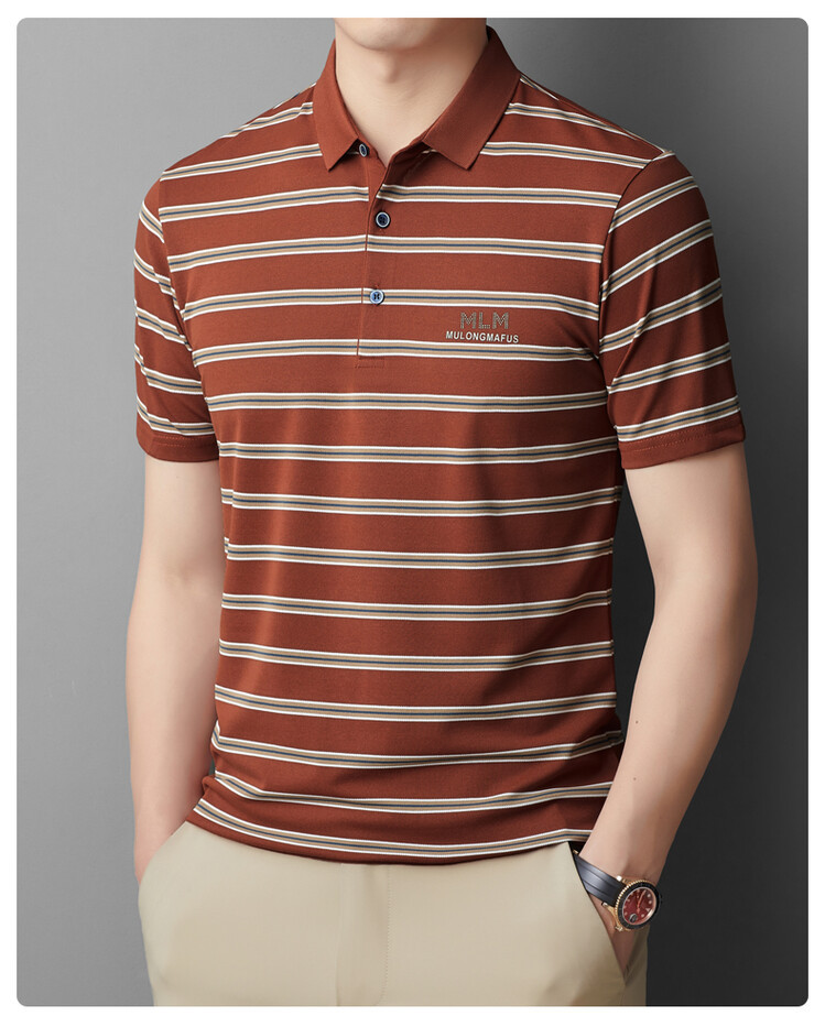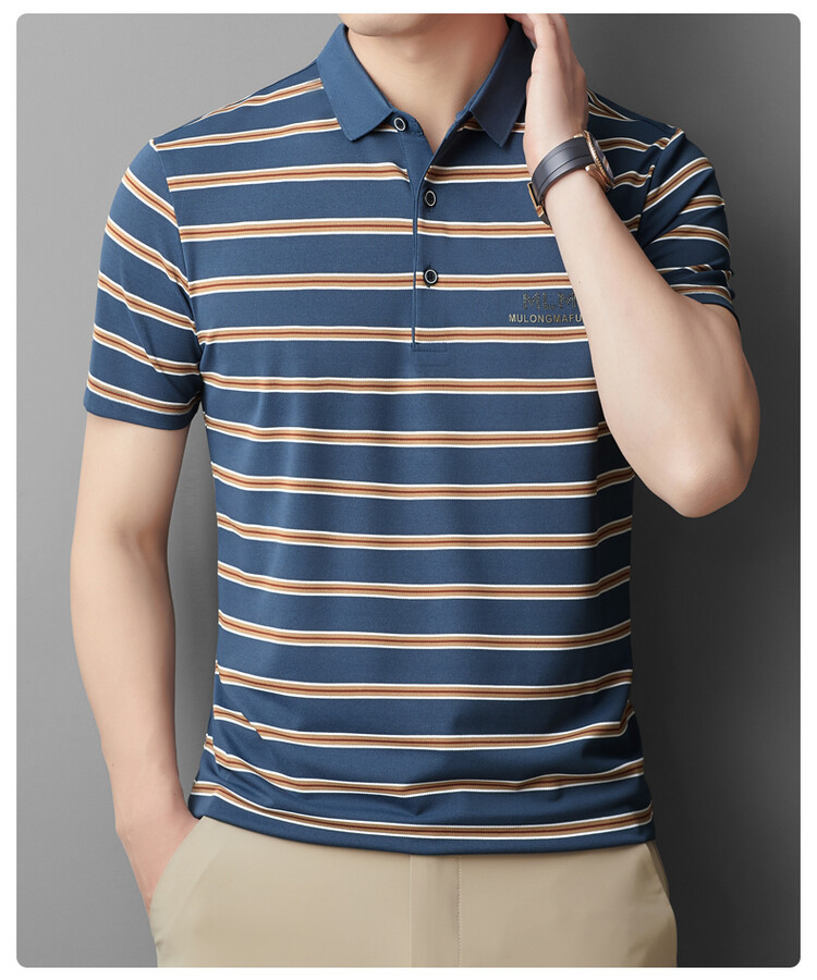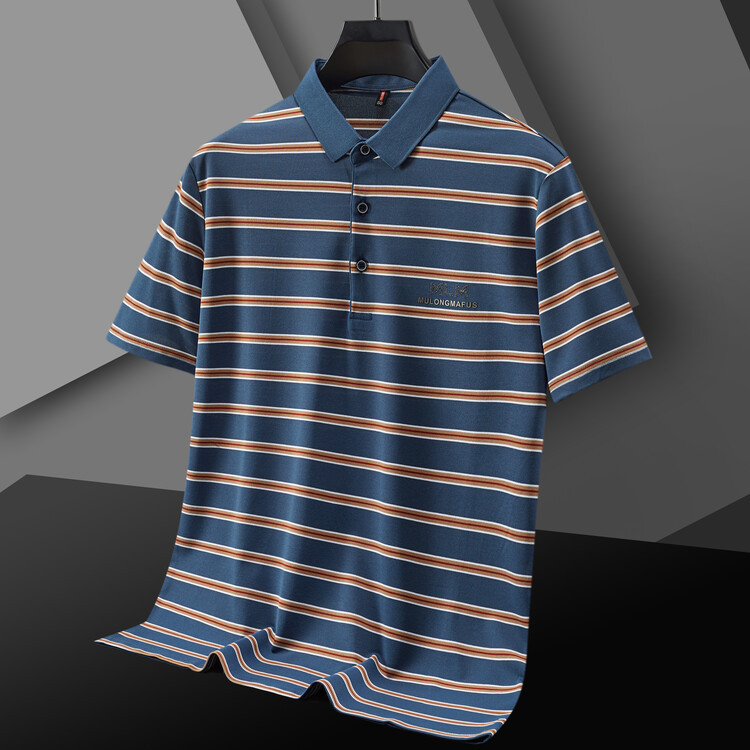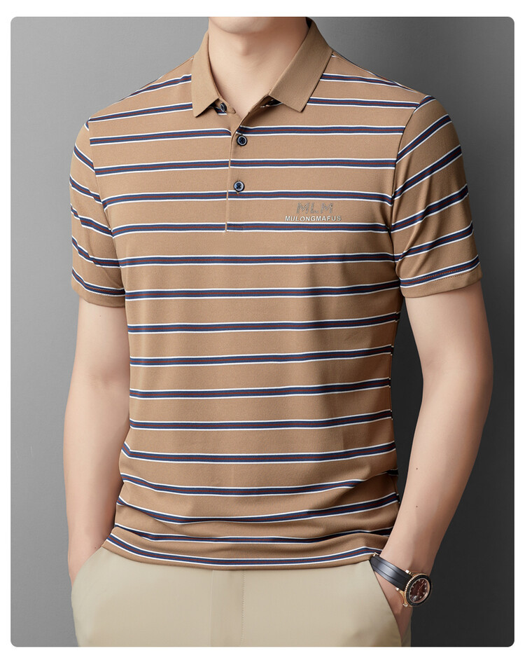 젊고 중년의 고급 스트라이프 라인석 반팔 티셔츠 남성용 여름 고급 비즈니스 셔츠 칼라 폴로 셔츠 2024 뉴스토어 가기