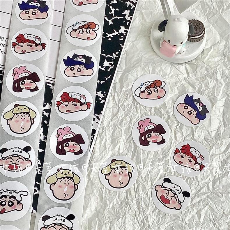 일본식 작은 빨간 책 산리오 작은 새 롤 스티커 크레용 작은 새로운 저널 재료 봉투 밀봉 스티커 점 스티커