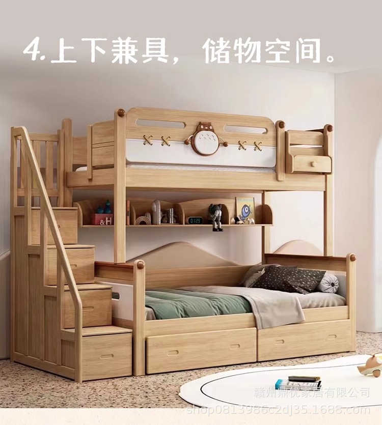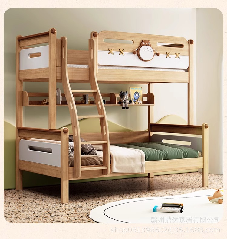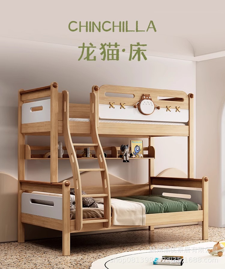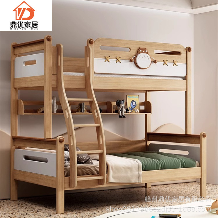 단단한 나무 만화 상부 및 하부 침대 작은 아파트 고무 나무 상부 및 하부 침대 토토로 어린이 침대 높고 낮은 침대스토어 가기