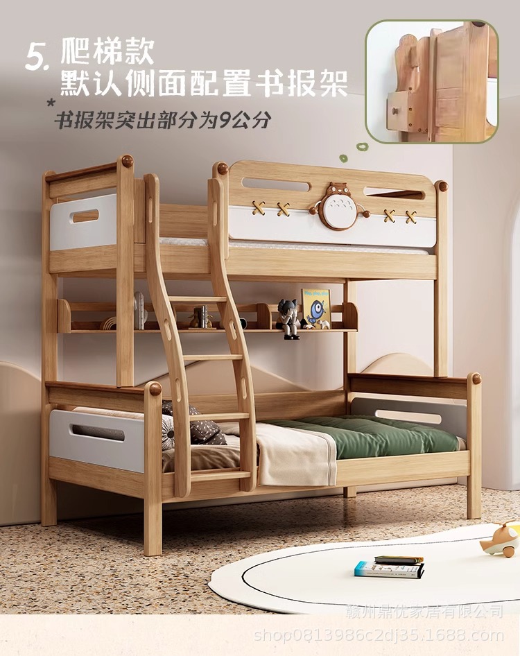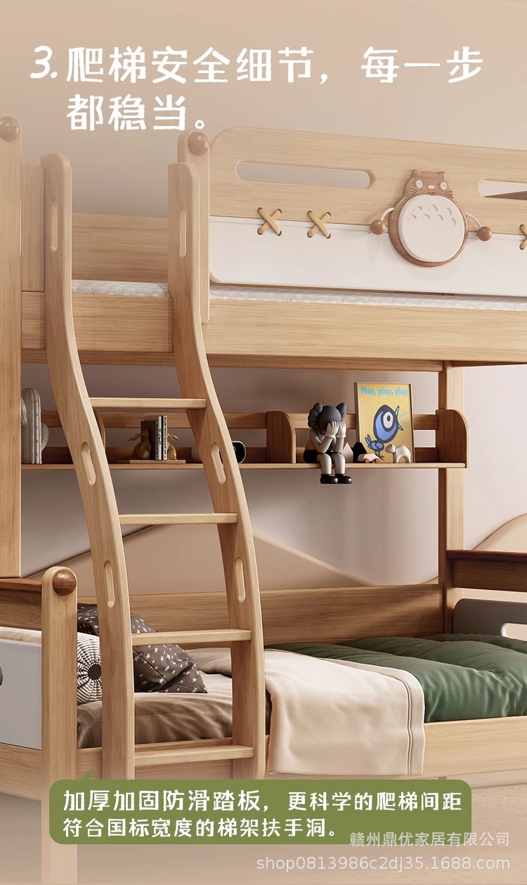 단단한 나무 만화 상부 및 하부 침대 작은 아파트 고무 나무 상부 및 하부 침대 토토로 어린이 침대 높고 낮은 침대
