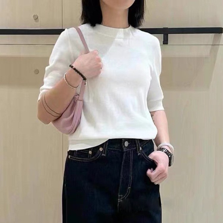 재고 있음 CS 스타일 여성복 봄 신상품 1069400015 라운드넥 니트 반팔 1069400017스토어 가기