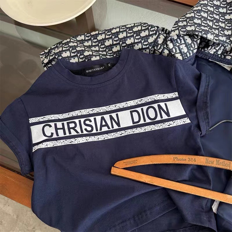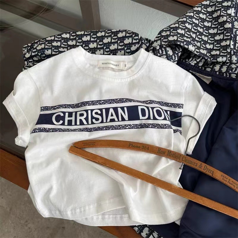 2025 어린이 반팔 티셔츠 여름 새 스타일 소년과 소녀 간단한 인쇄 반팔 티셔츠 아기 편지 티셔츠 순수 코튼스토어 가기