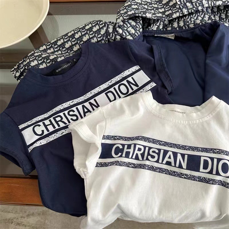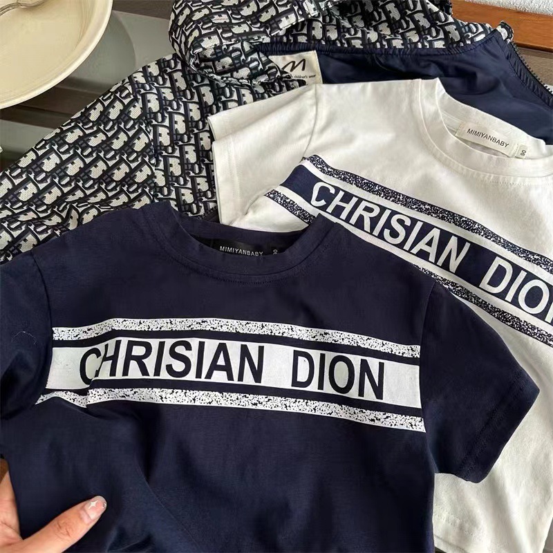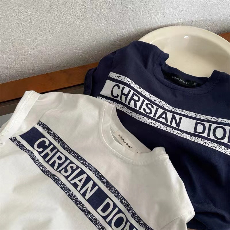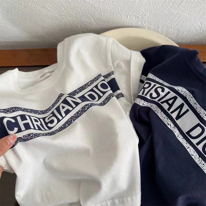 2025 어린이 반팔 티셔츠 여름 새 스타일 소년과 소녀 간단한 인쇄 반팔 티셔츠 아기 편지 티셔츠 순수 코튼