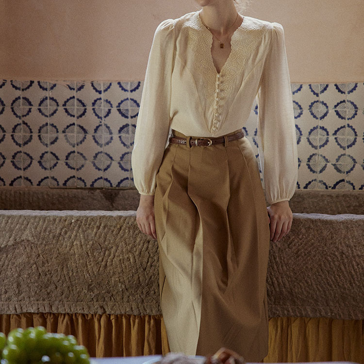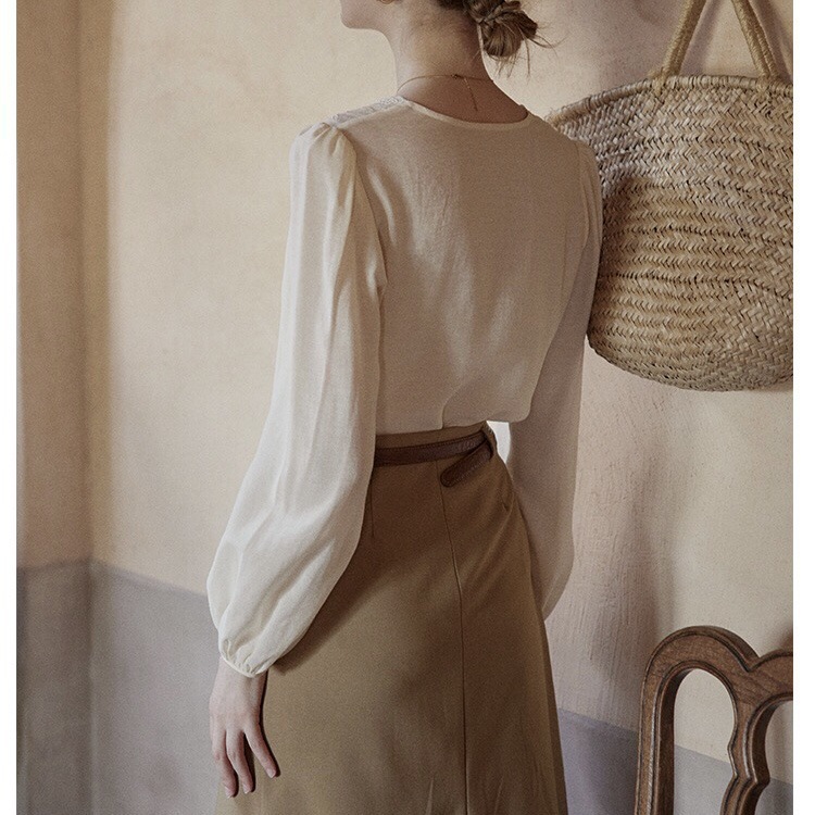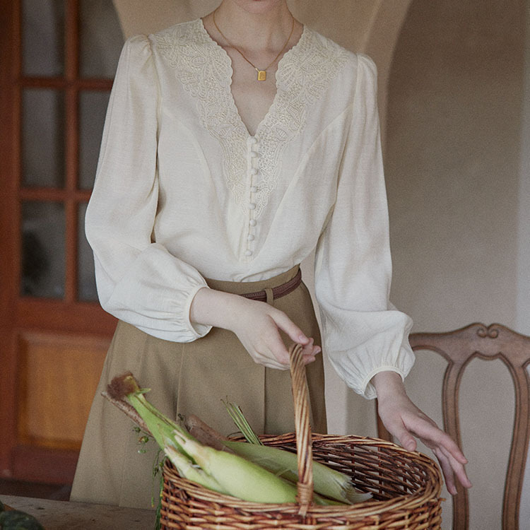 프랑스 복고풍 중공업 자수 v 넥 셔츠 여성 의류 봄 2025 새로운 긴팔 패션 기질 탑 다목적스토어 가기