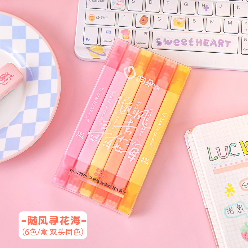 모란 디 더블 헤드 형광 펜 라이트 컬러 키 마크 표시 펜 학생 컬러 계정 낙서 펜 세트