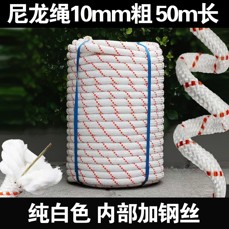 • 나일론 로프 + 강철 코어 10mm 두께 50m/번들 흰색