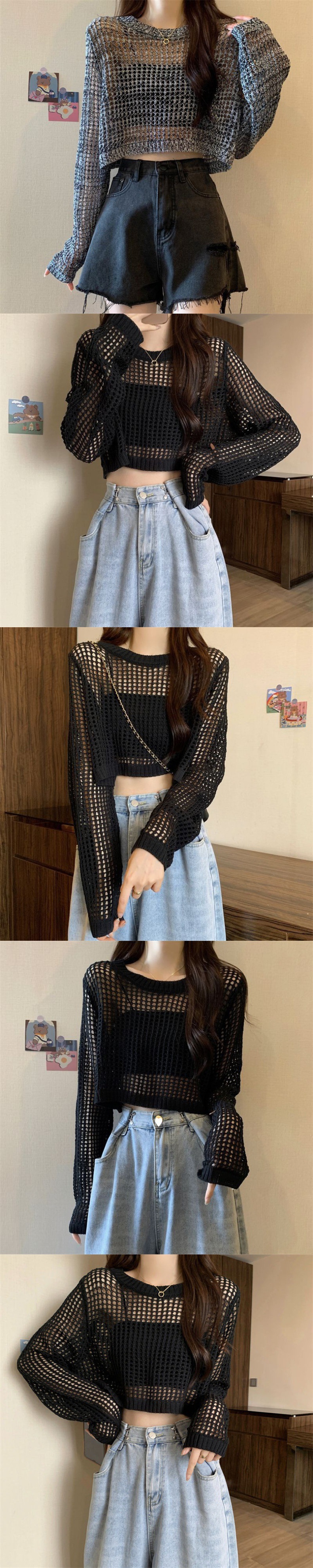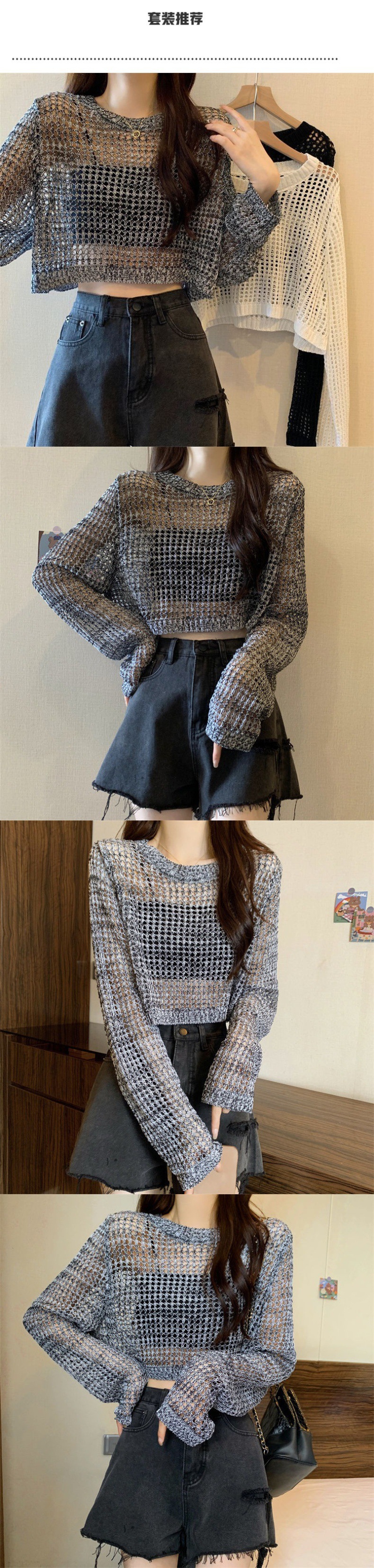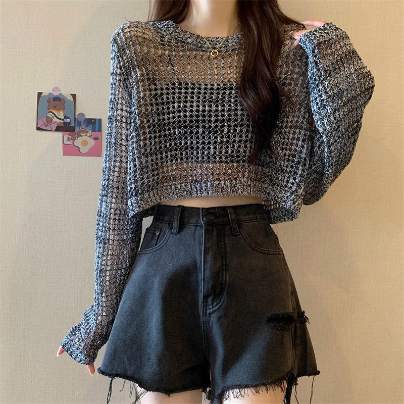 여성의 속이 빈 스웨터 2023 새로운 여름 얇은 느슨한 서양식 짧은 태양 보호 외부 블라우스 핫 걸 탑스토어 가기