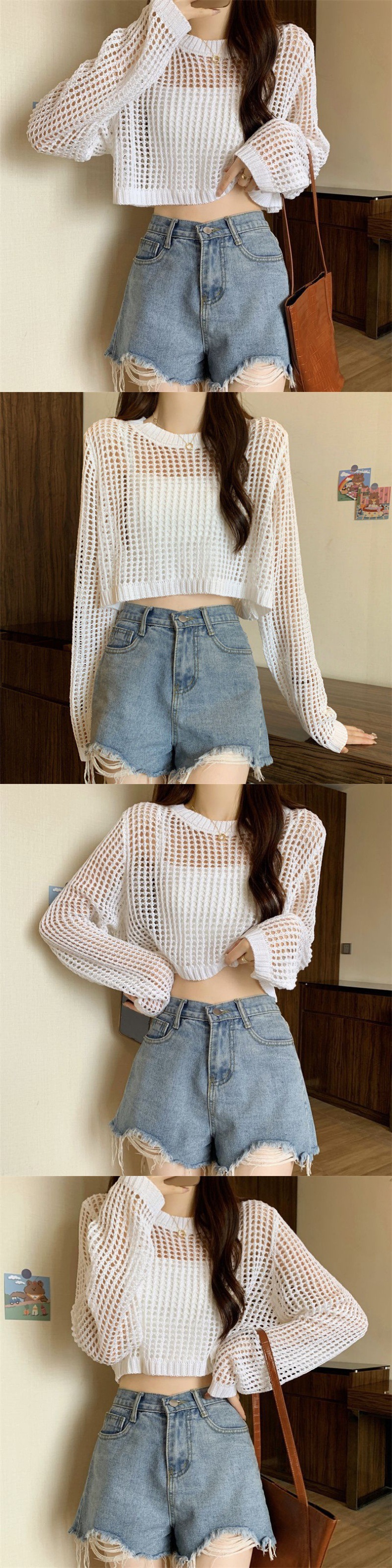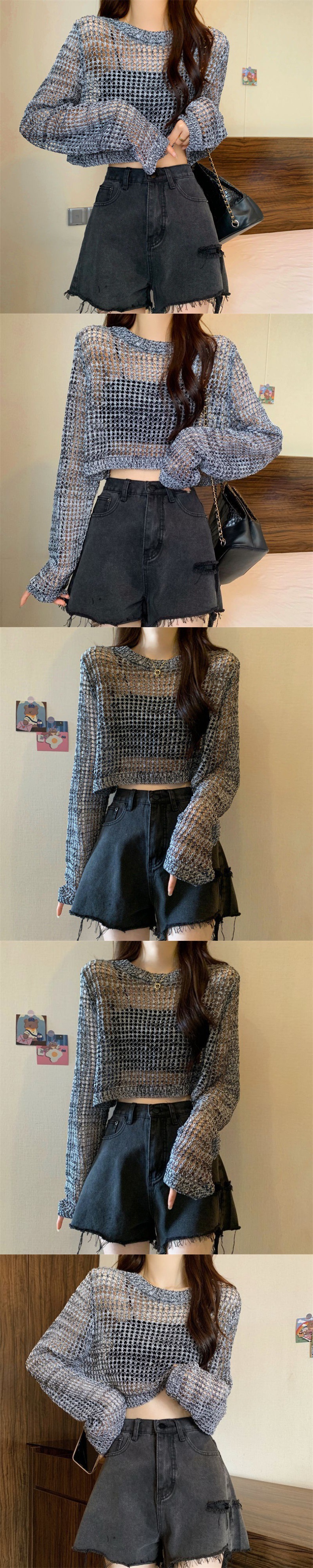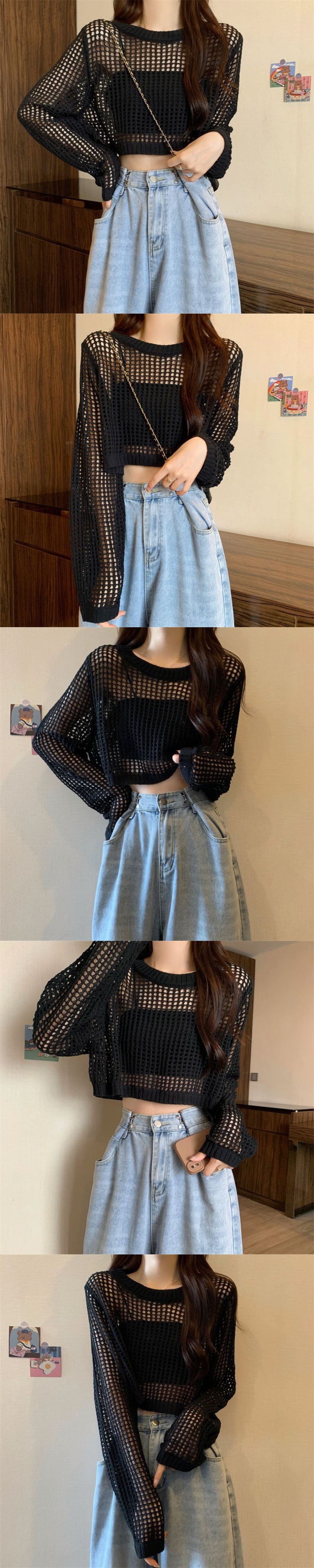 여성의 속이 빈 스웨터 2023 새로운 여름 얇은 느슨한 서양식 짧은 태양 보호 외부 블라우스 핫 걸 탑스토어 가기