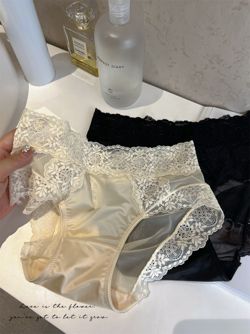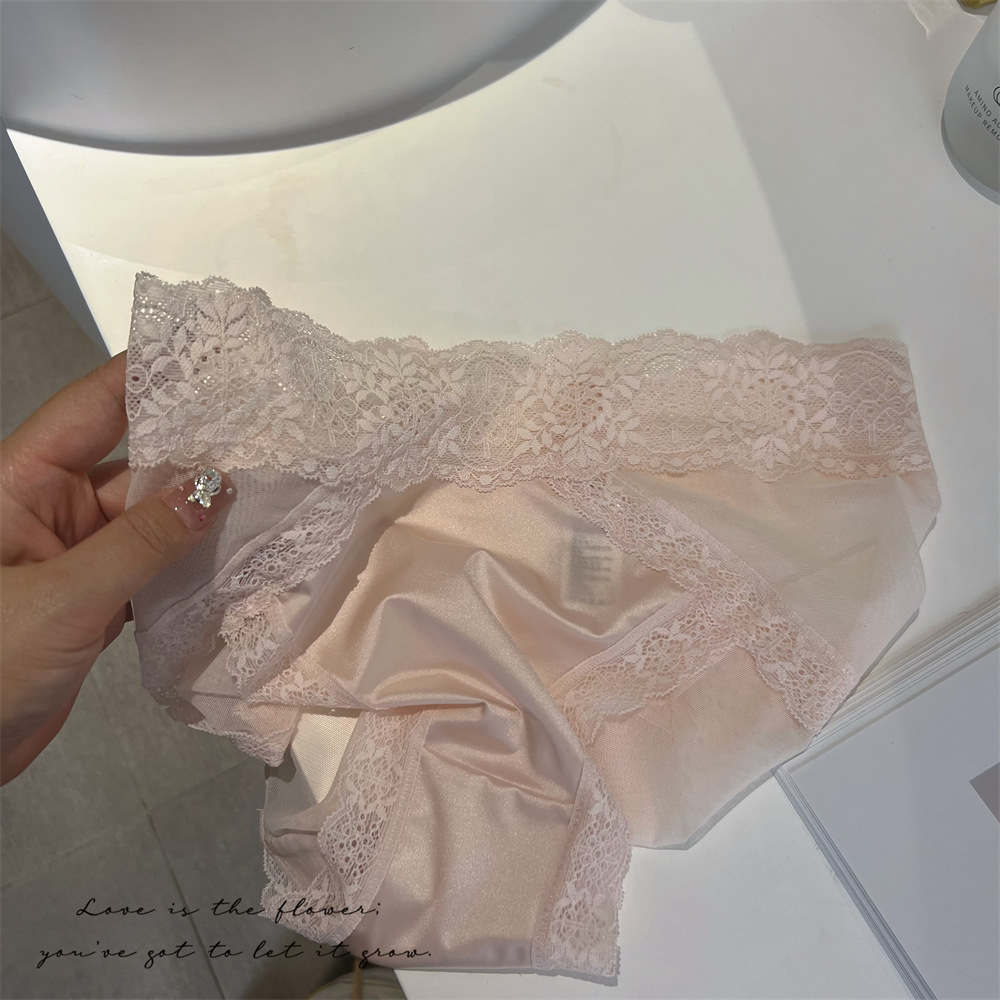 프랑스 새틴 레이스 섹시한 속옷 여성의 고급 메쉬 순수한 순수한 순면 가랑이 중간 허리 소녀 브리프 얇은스토어 가기