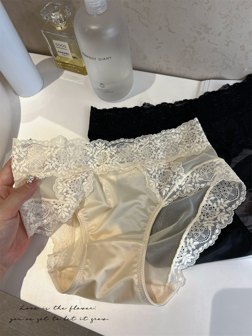 프랑스 새틴 레이스 섹시한 속옷 여성의 고급 메쉬 순수한 순수한 순면 가랑이 중간 허리 소녀 브리프 얇은