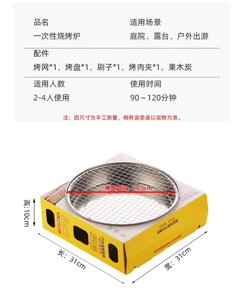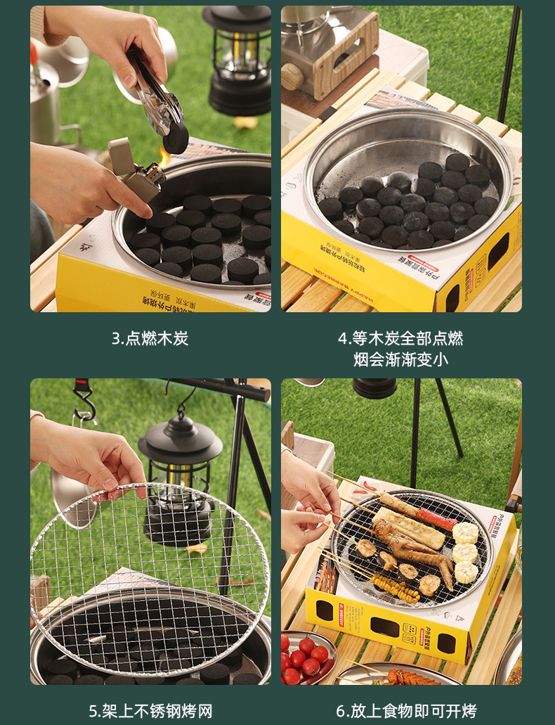 야외 바베큐 스토브 일회용 무연 숯 편리한 오븐 홈 캠핑 테이크 아웃 바베큐 세트 선물 직접 공급스토어 가기