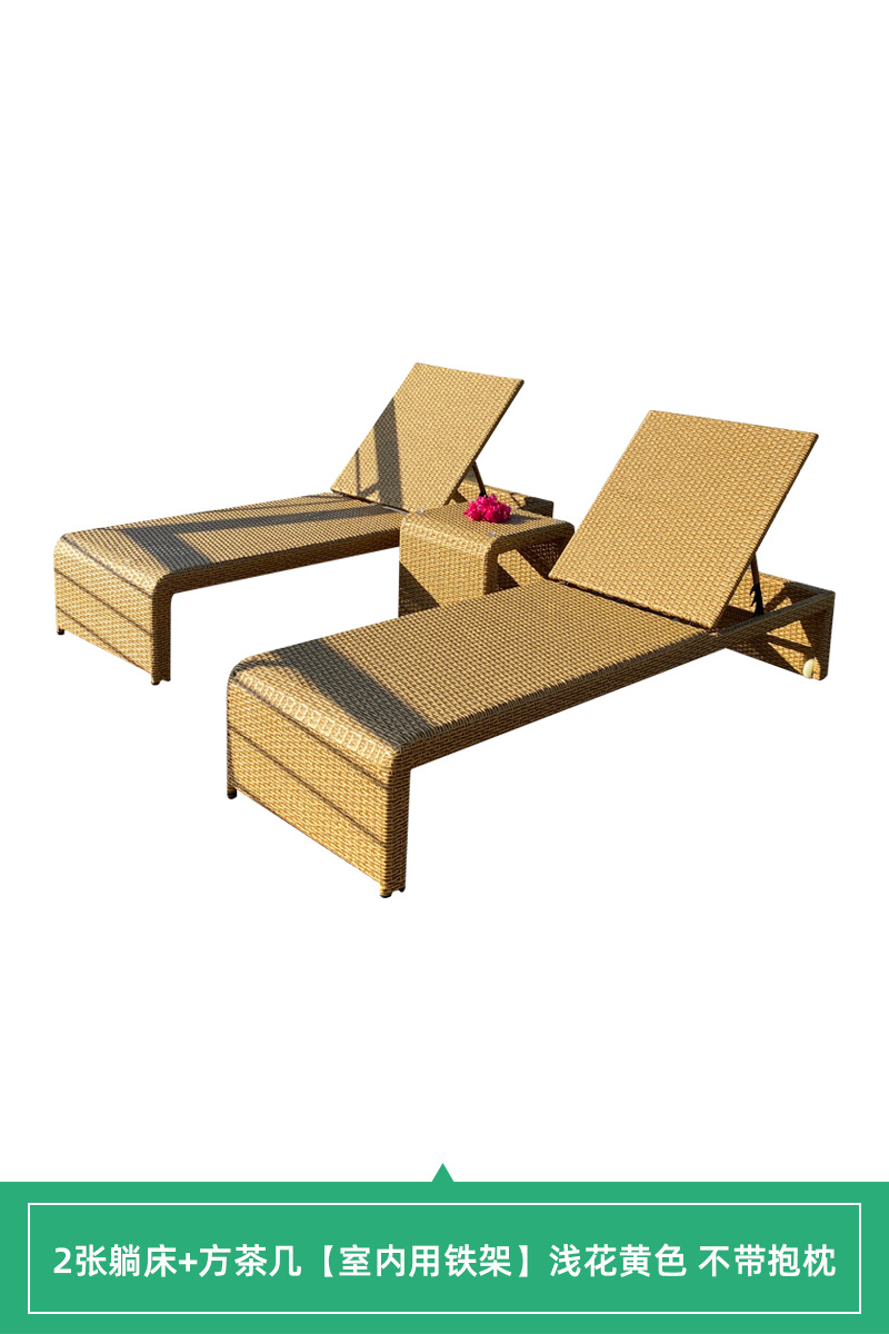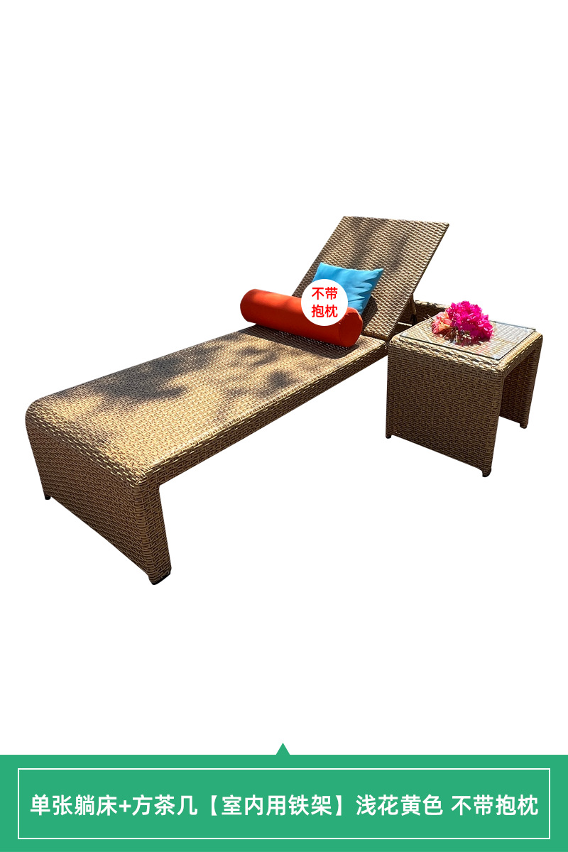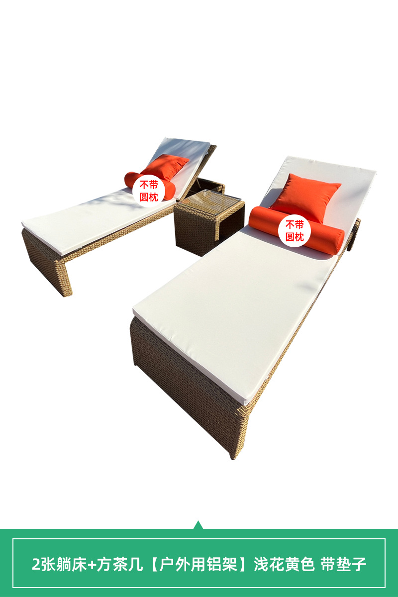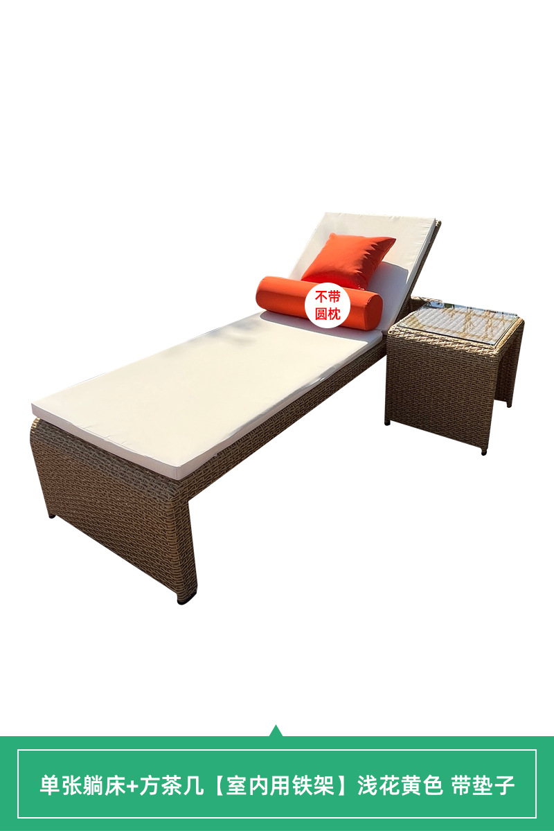 • [야외 알루미늄 프레임] 단일 누워있는 침대 + 사각형 커피 테이블 밝은 꽃 노란색 매트