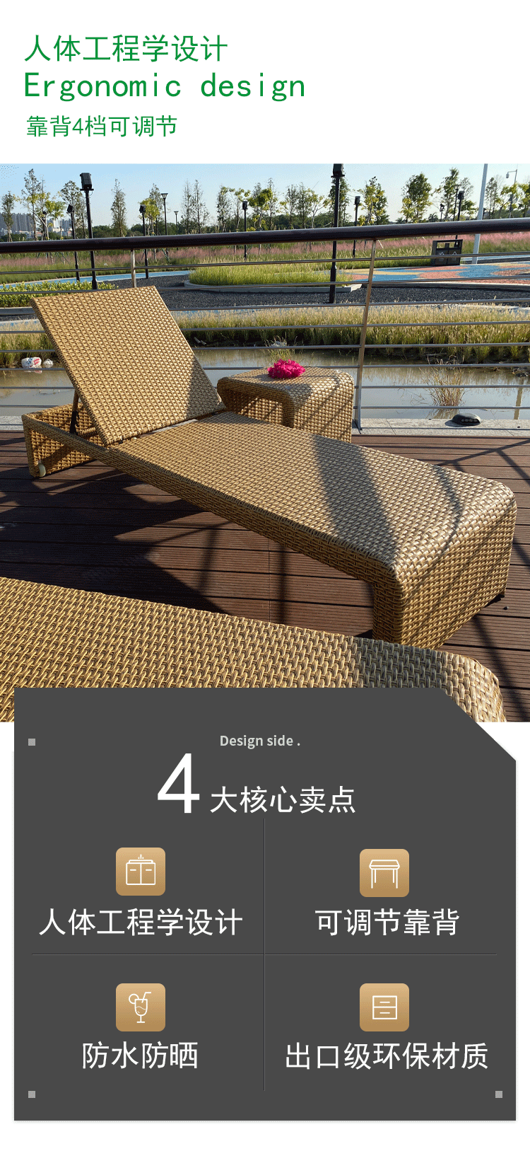 야외 거짓말 침대 안락 의자 방수 태양 방지 수영장 해변 빌라 정원 테라스 차양 등나무 의자