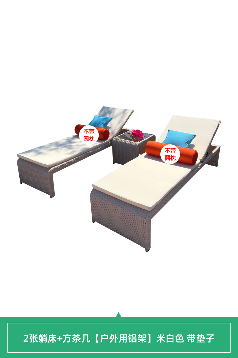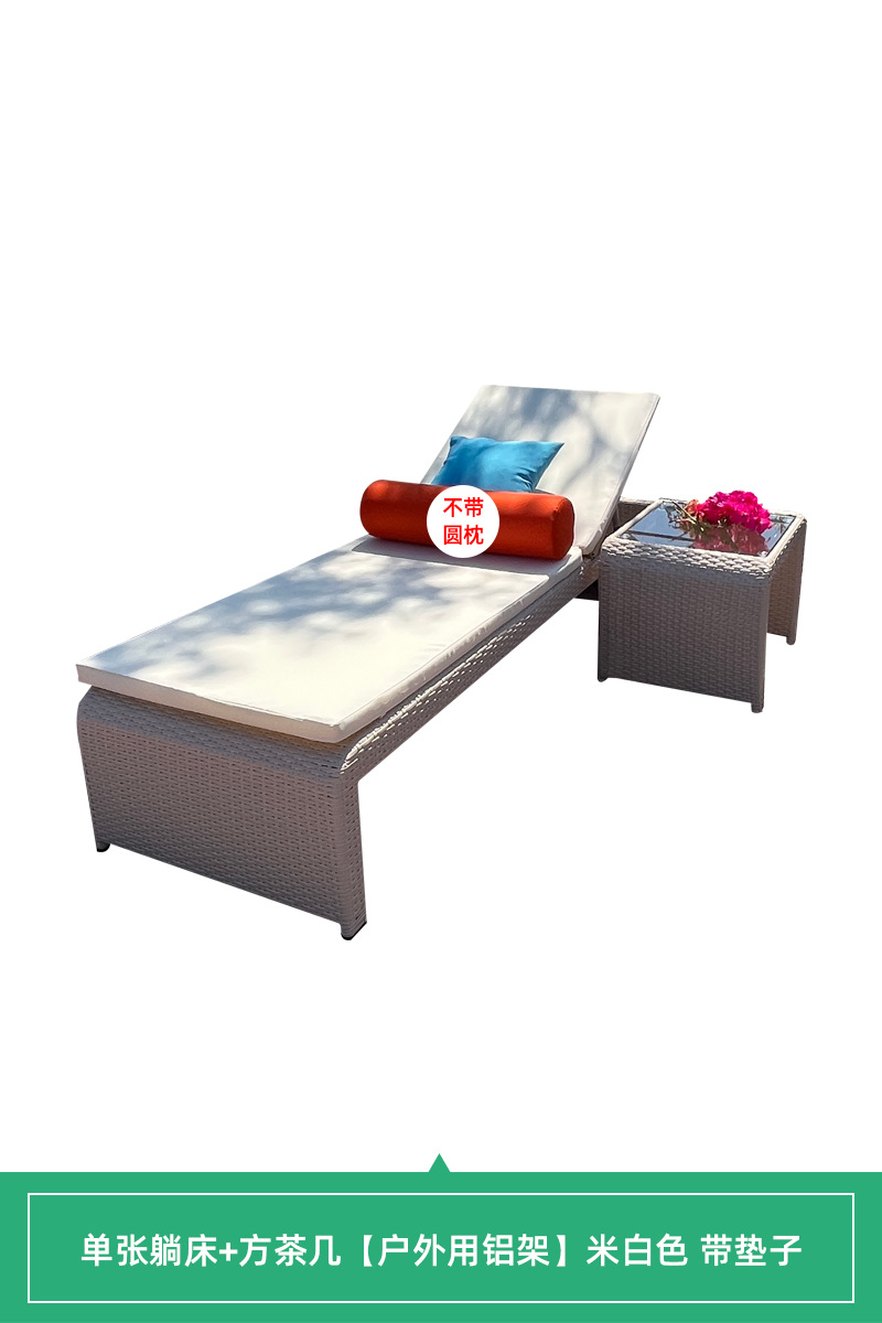 • [야외 알루미늄 프레임] 싱글 거짓말 침대 + 사각형 티 테이블 베이지 매트