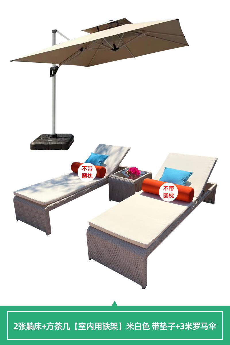 • [실내 철제 프레임] 2 개의 누워있는 침대 + 사각형 티 테이블 베이지 매트 + 3 m 빛 로마 우산