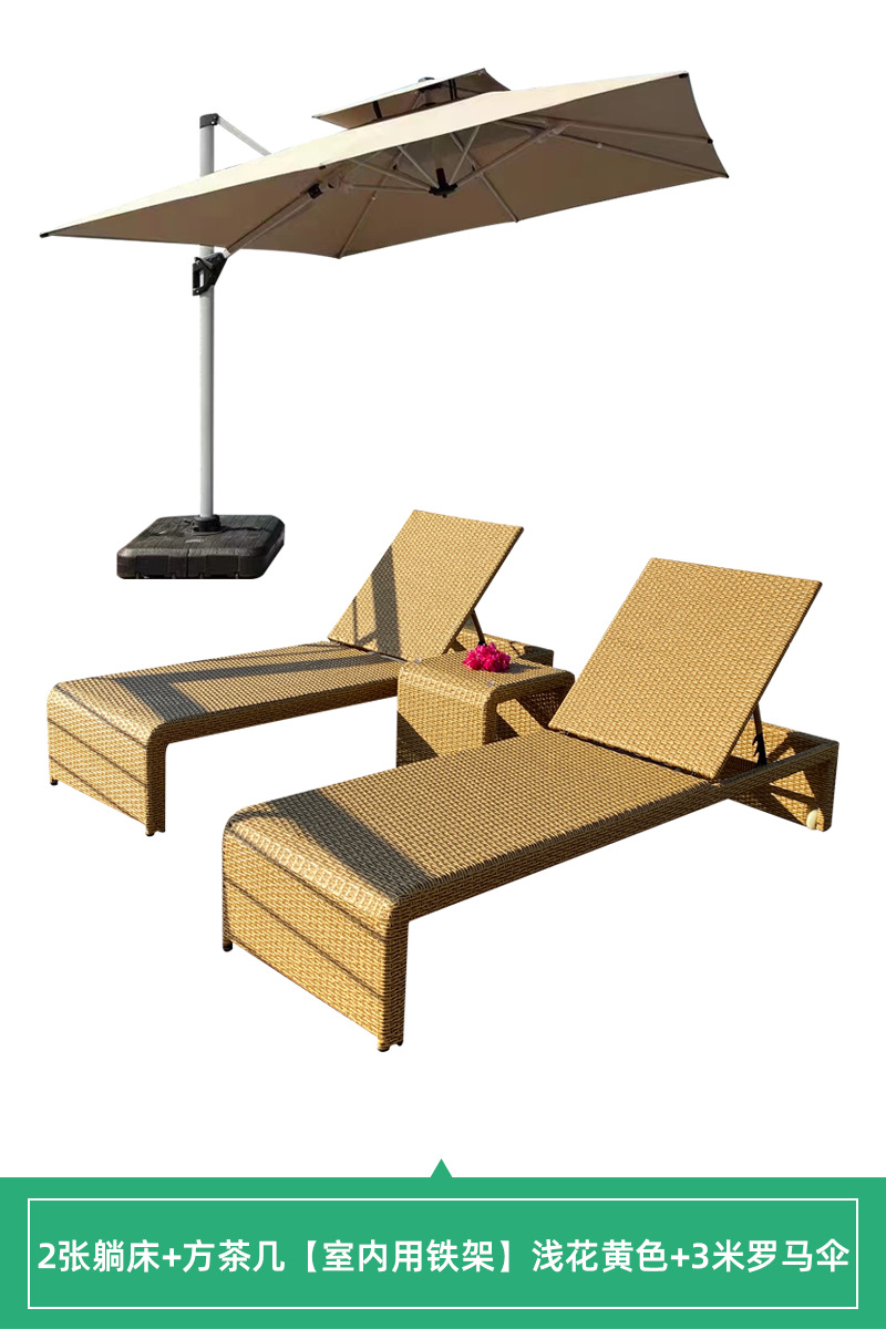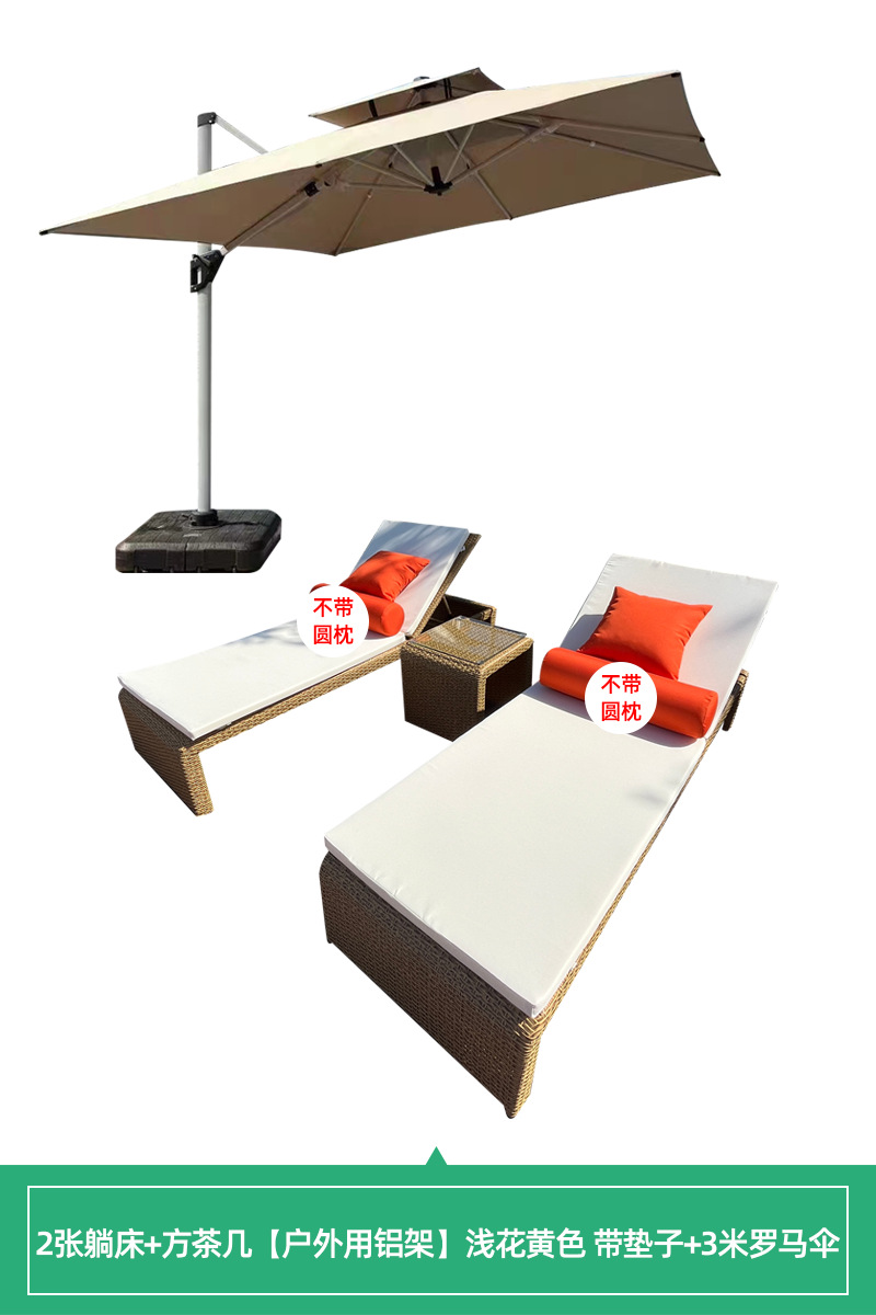 • [야외 알루미늄 프레임] 2 개의 누워있는 침대 + 사각형 커피 테이블 밝은 꽃 노란색 매트 + 3 m 로마 우산
