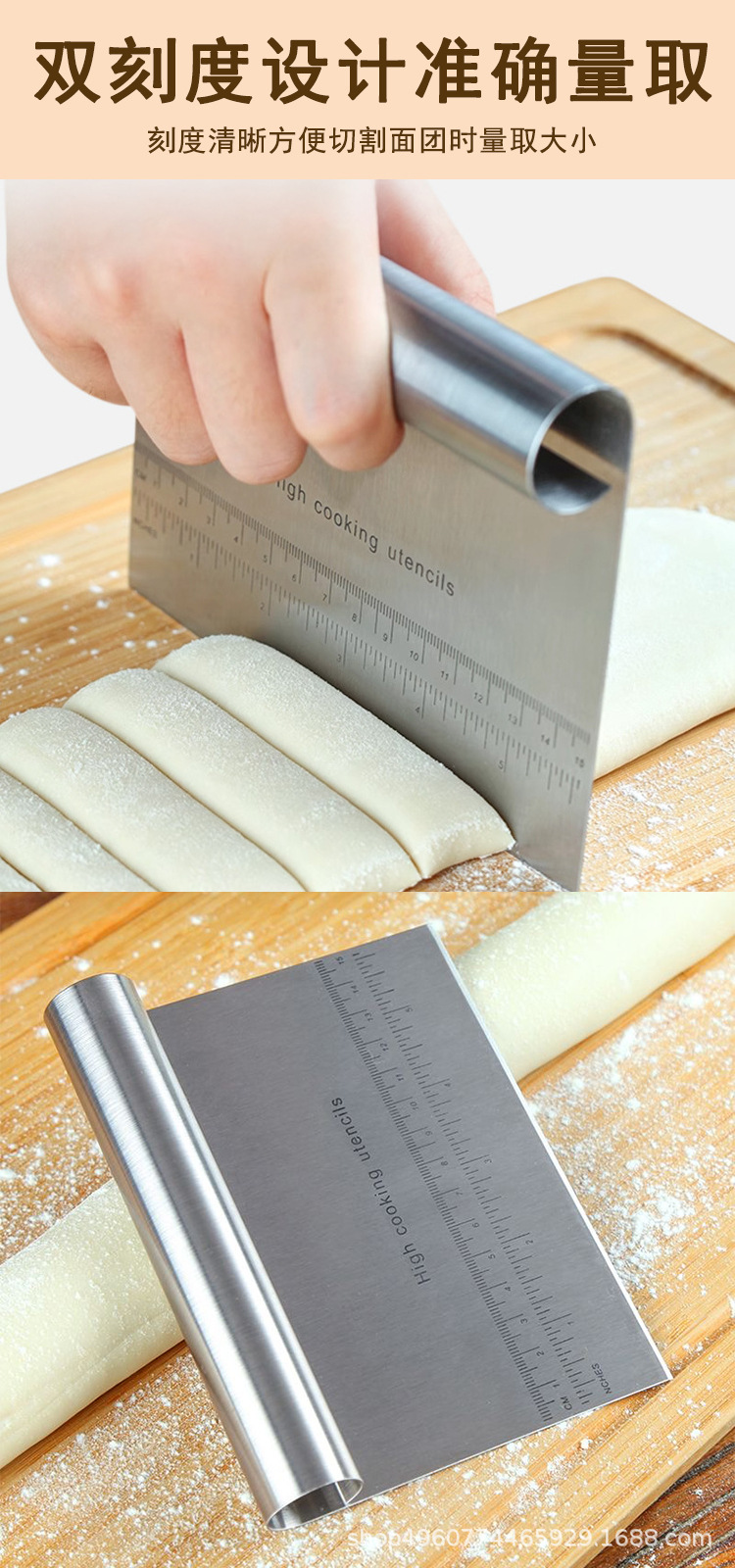 국경 간 스테인레스 스틸 국수 절단 칼 베이킹 밀가루 절단 국수 누가 절단 칼 베이킹 용 눈금이있는 스크레이퍼스토어 가기