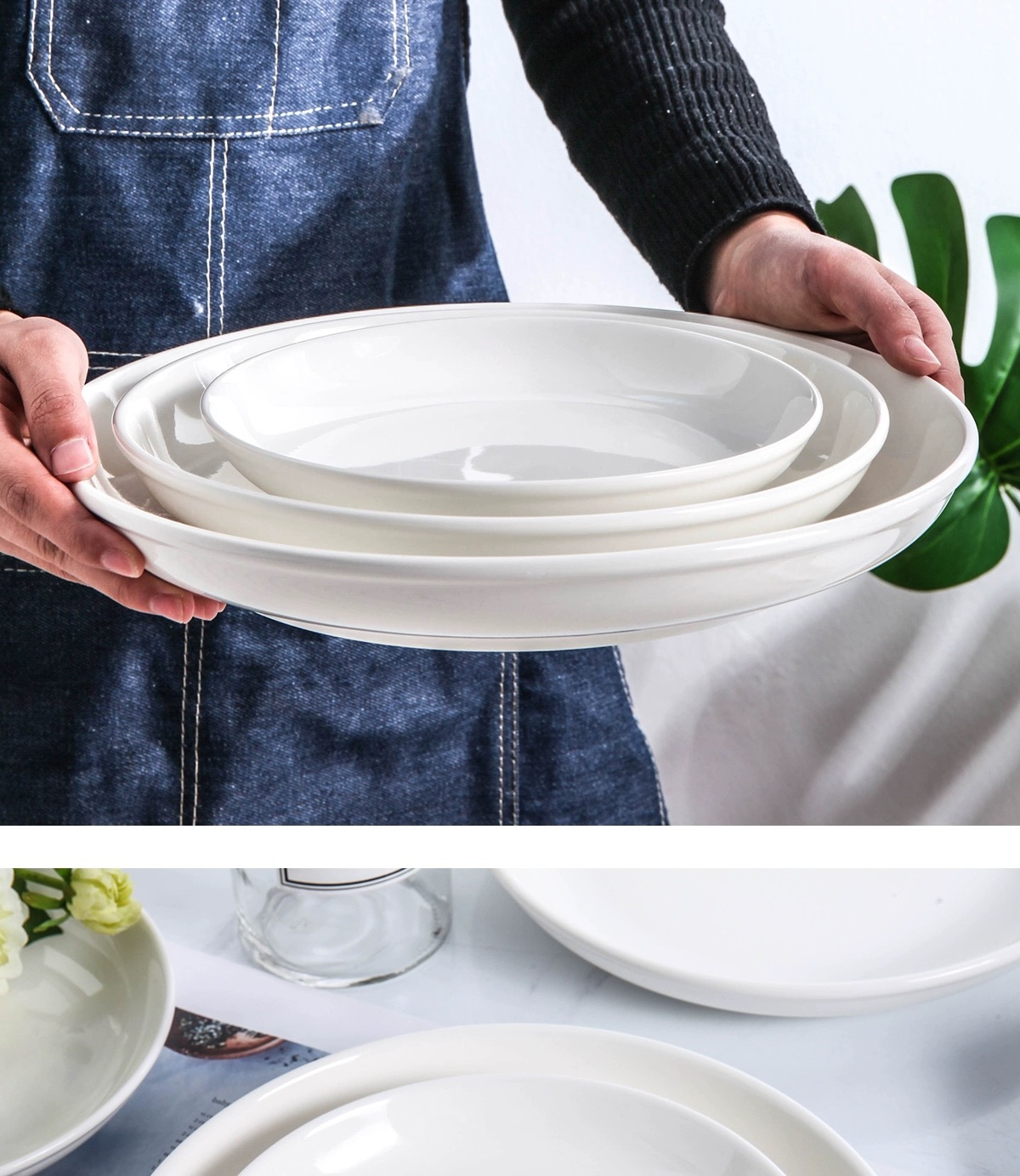 세라믹 대형 플레이트 순수 화이트 가정용 레스토랑 접시 과일 플레이트 호텔 레스토랑 대형 다진 후추 생선 머리 수프 플레이트스토어 가기