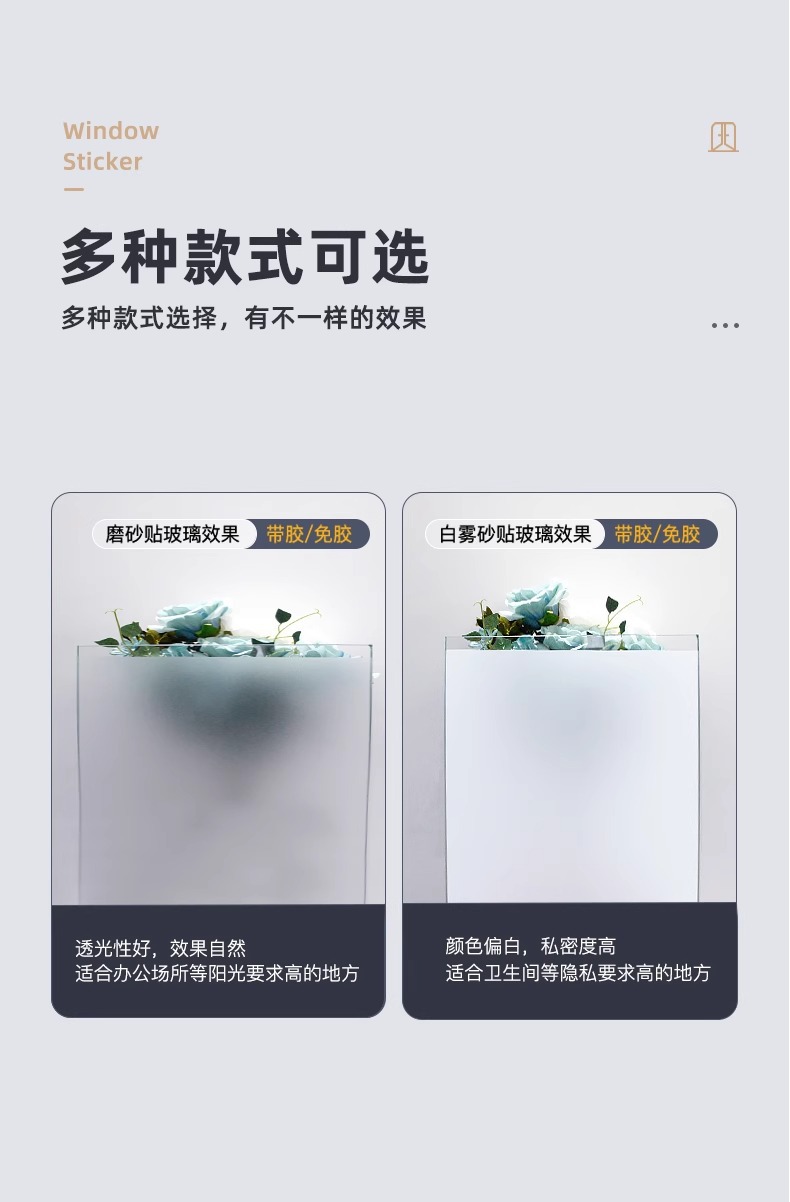 반투명 유리 스티커 불투명 창문 유리문 화장실 욕실 정전기 자가 접착 방지 필름 무광 프라이버시 필름