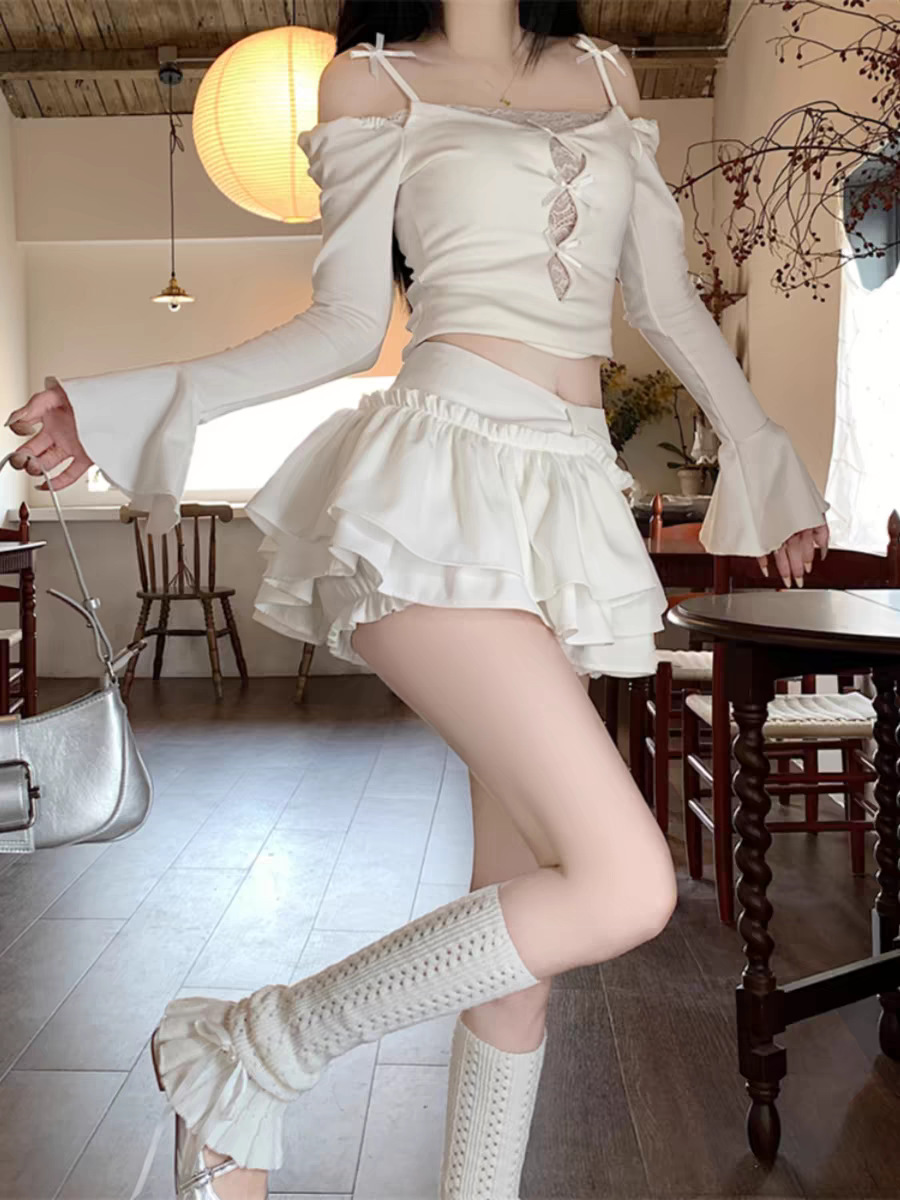 여성을위한 흰색 푹신한 스커트 봄/여름 2024 새로운 발레 스타일 높은 허리 틈새 디자인 감각 A 라인 케이크 스커트