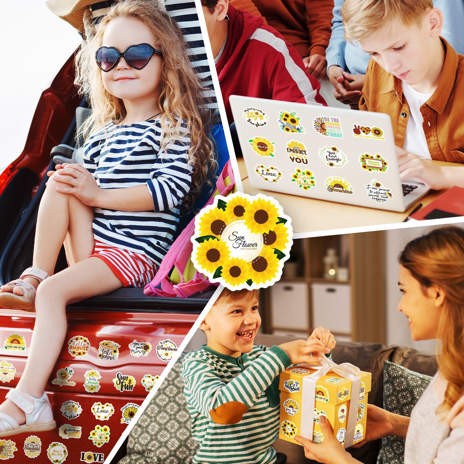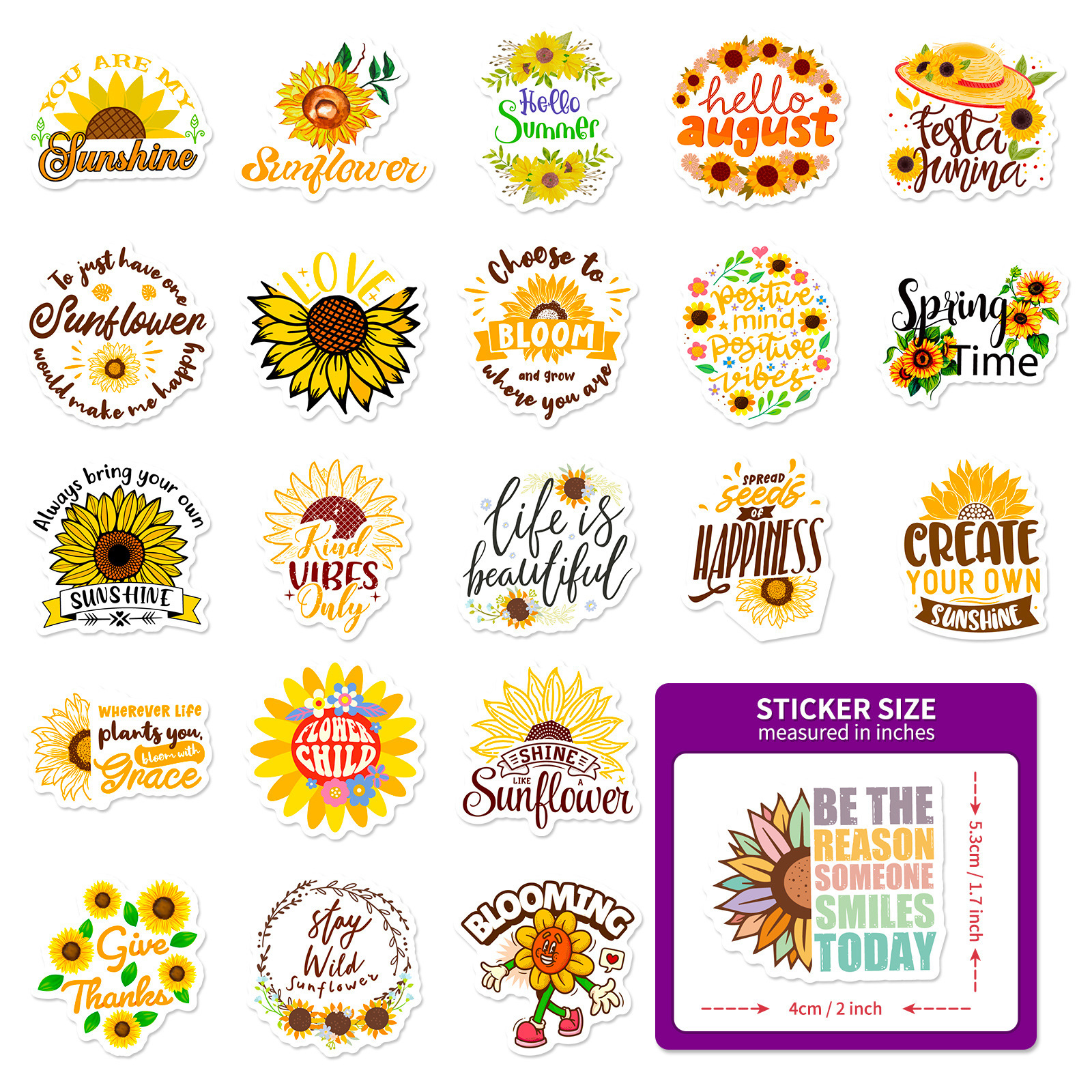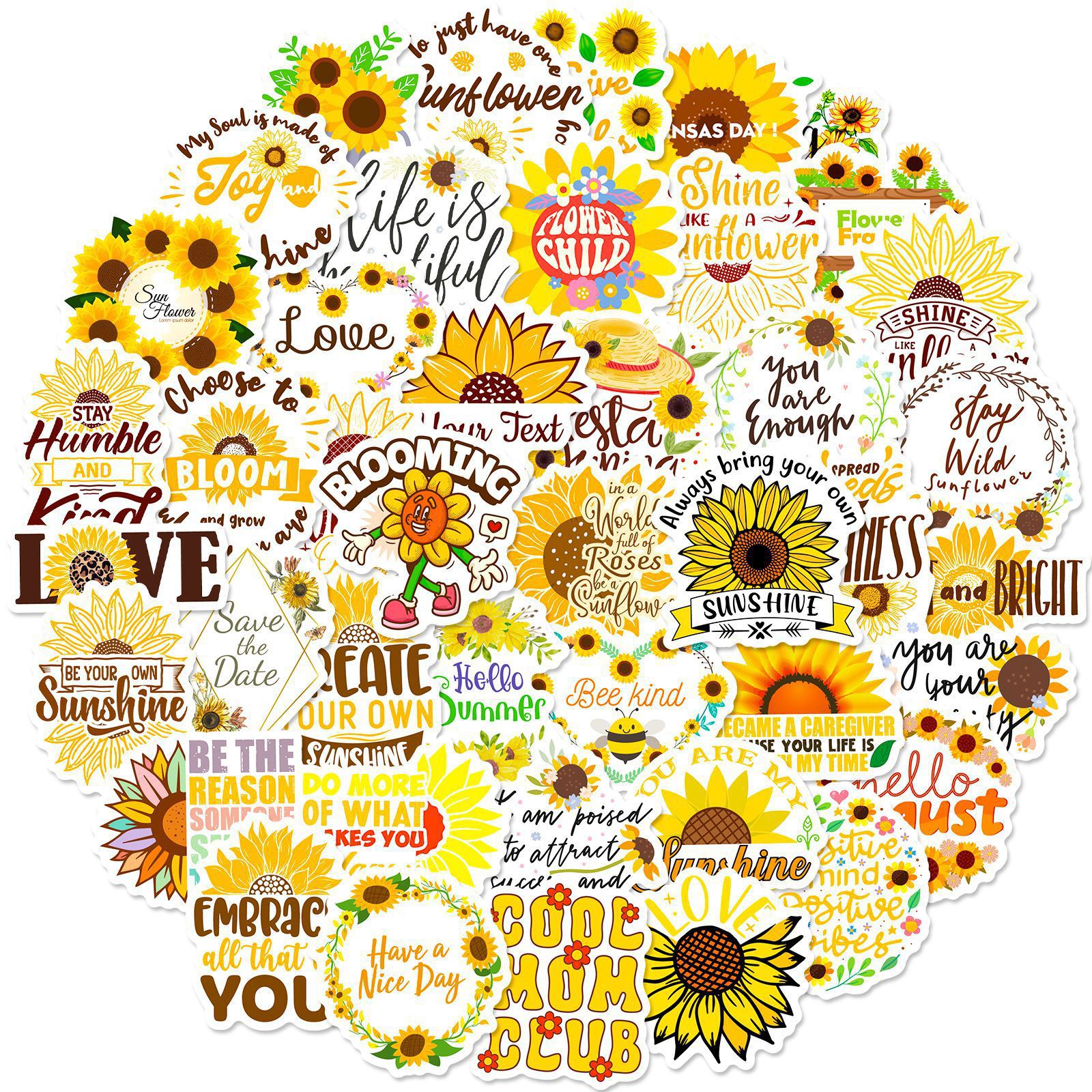 50 해바라기 영어 스티커 작은 신선한 바람 해바라기 국경 만화 스티커 휴대 전화 컴퓨터 스티커스토어 가기