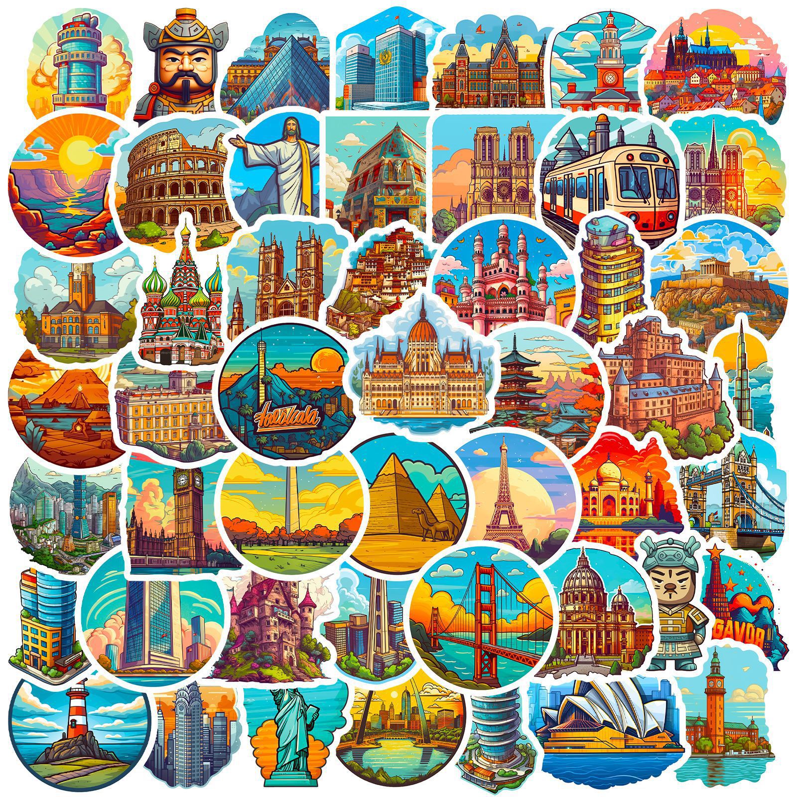 50 세계 랜드 마크 스티커 건축 인문학 풍경 창조적 인 관광 도시 건축지도 스티커