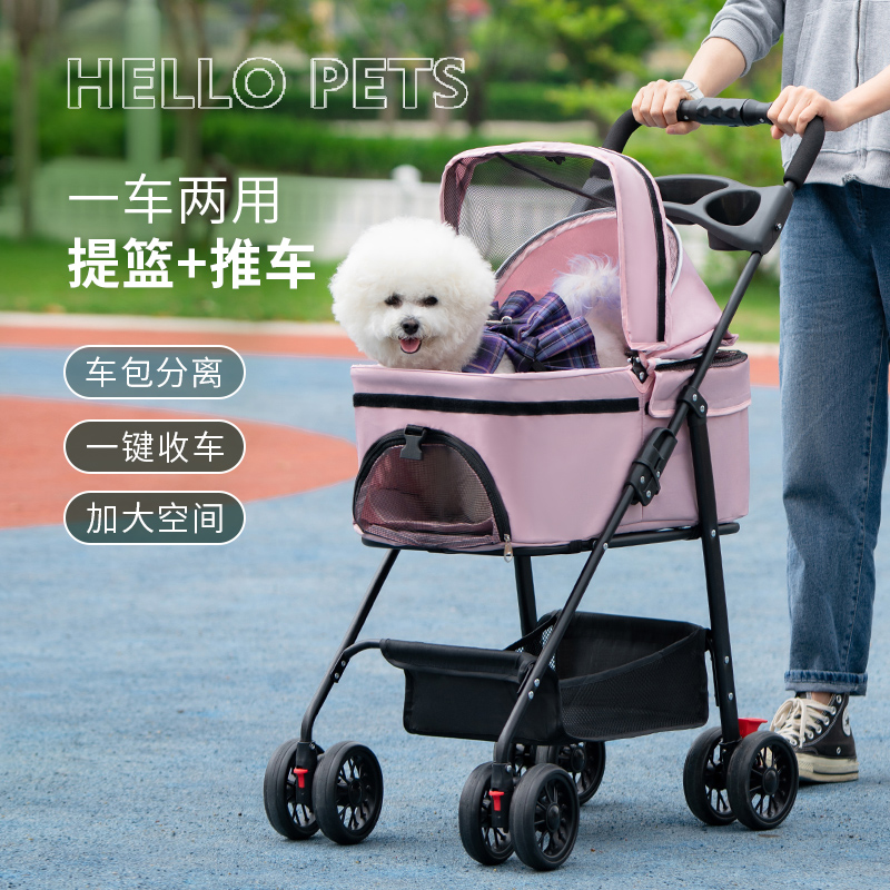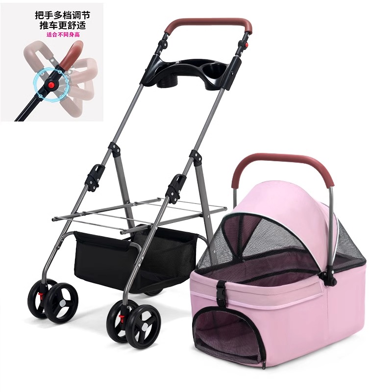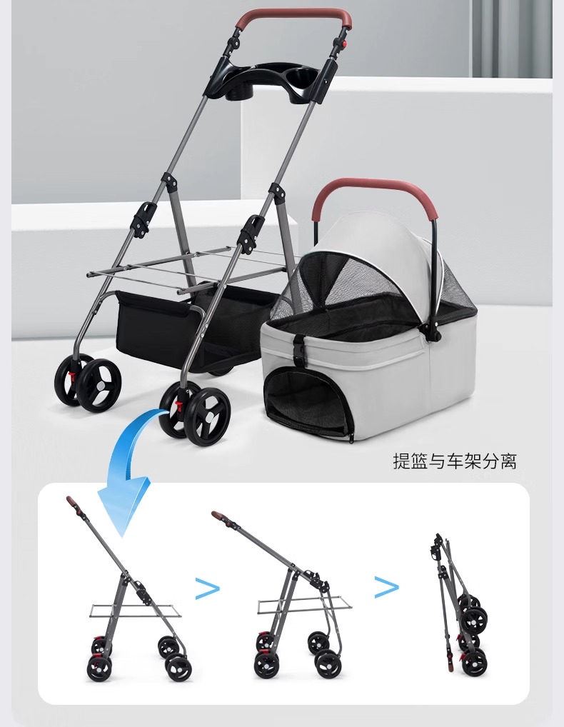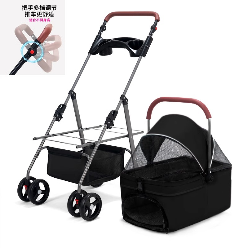 애완 동물 유모차 중소 경량 접이식 개 고양이 가방 분리 케이지 밖으로 작은 애완 동물 카트 트롤리