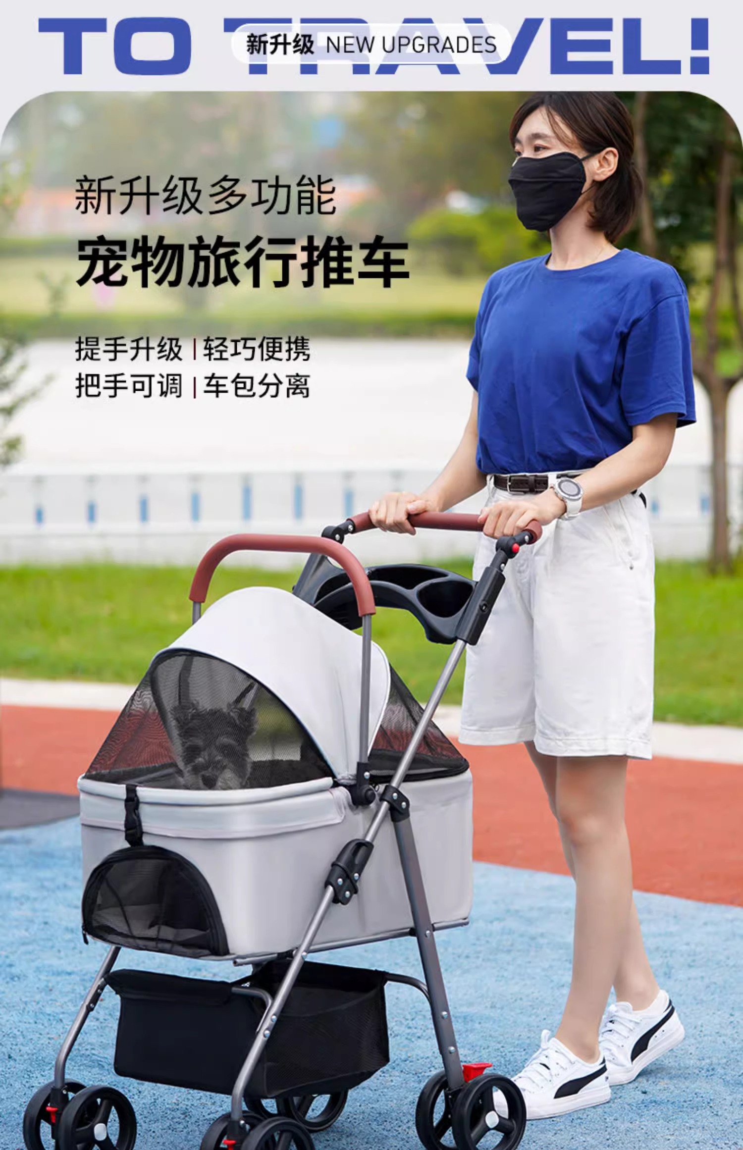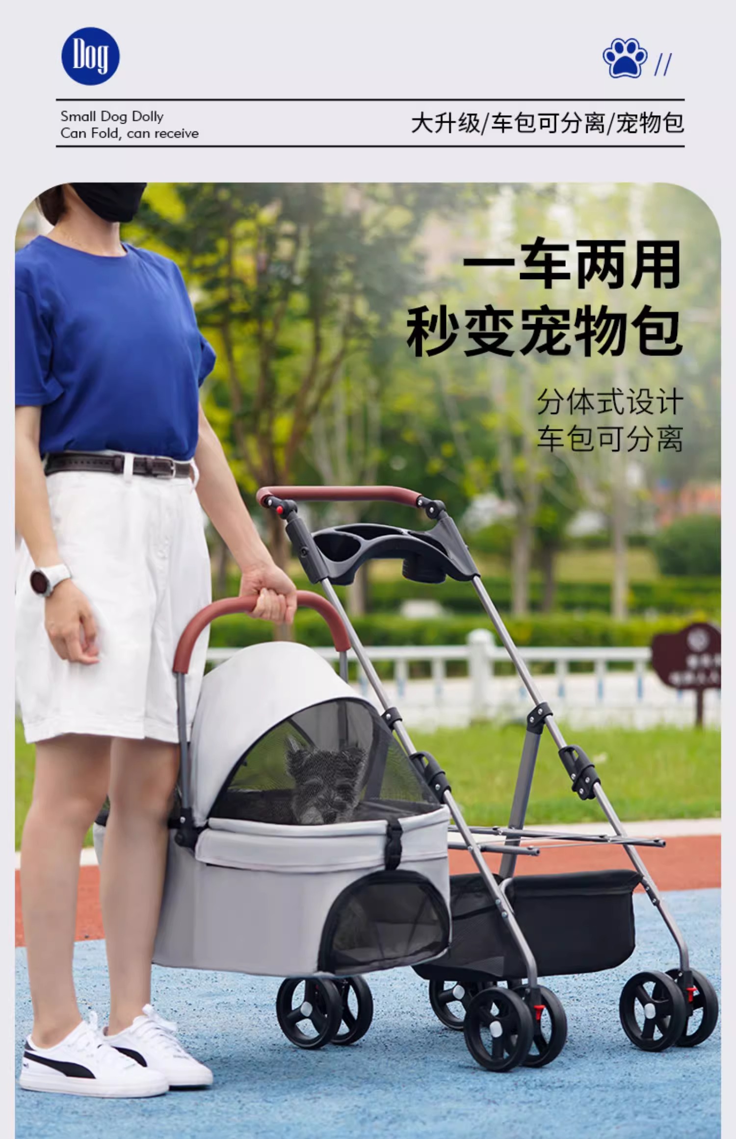 애완 동물 유모차 중소 경량 접이식 개 고양이 가방 분리 케이지 밖으로 작은 애완 동물 카트 트롤리스토어 가기