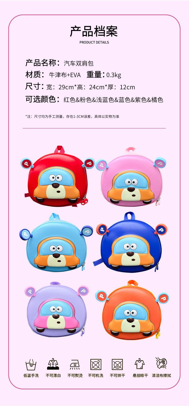 유치원 학생 어린이 책가방 귀여운 만화 소녀 아기 달걀 껍질 배낭 소년 자동차 경량 배낭