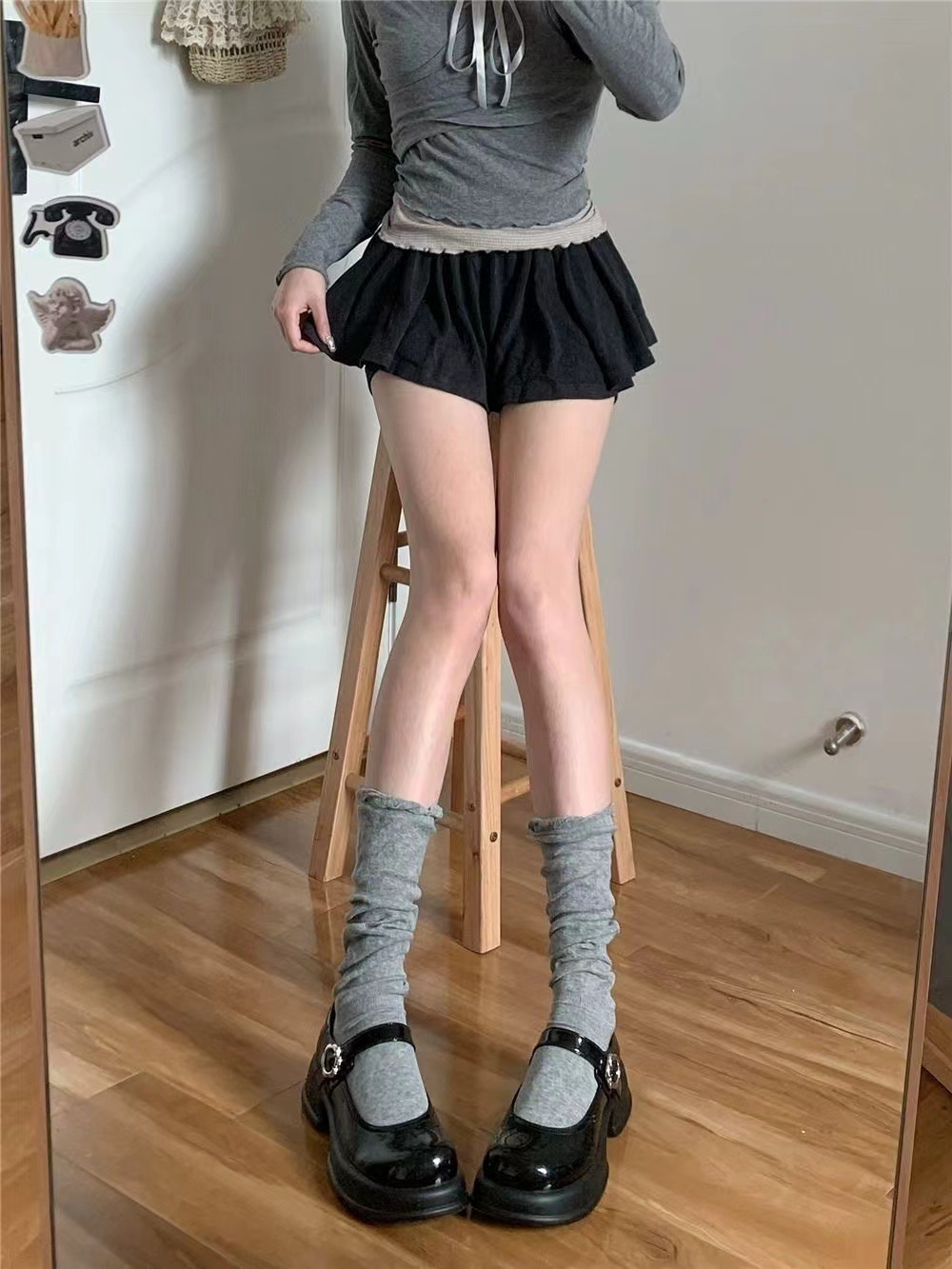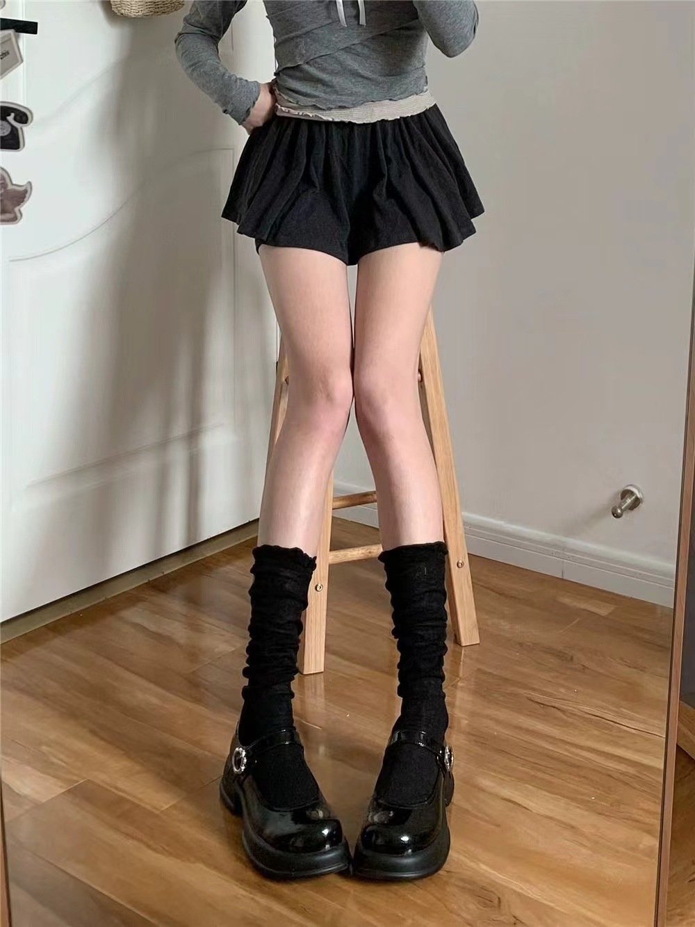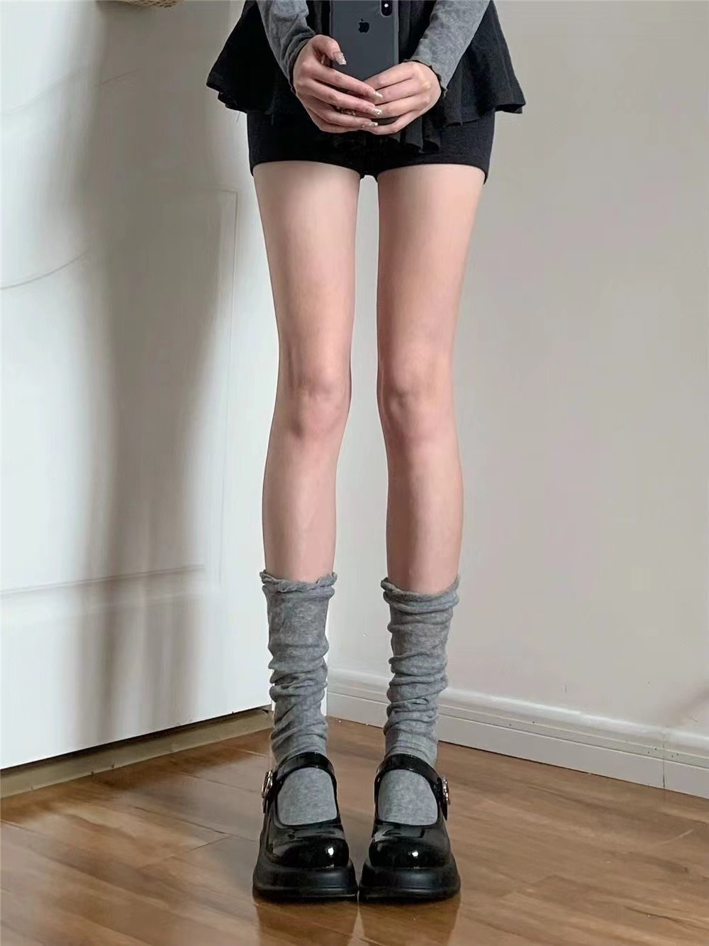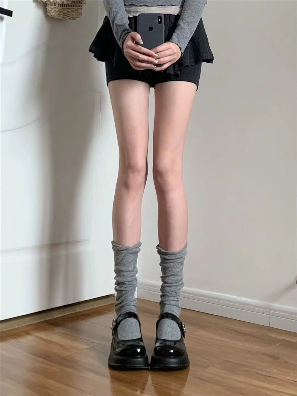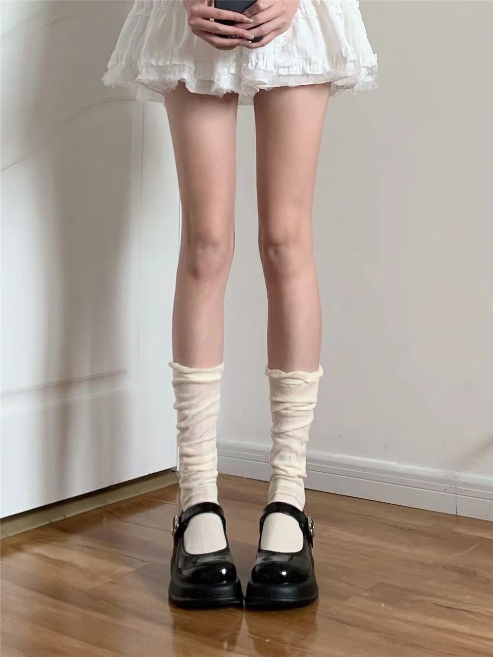 발레 스타일 흰색 거품 입 송아지 양말 여름 메쉬 면사 무릎 길이 더미 양말 Mary Jane 양말
