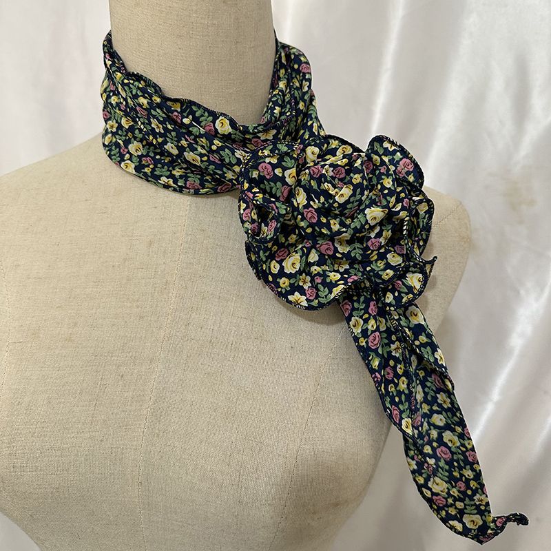S 스타일 작은 꽃 다목적 스카프 새틴 프랑스 스타일 작은 실크 스카프 랜턴 꽃 이동식 꽃 장식 스카프스토어 가기