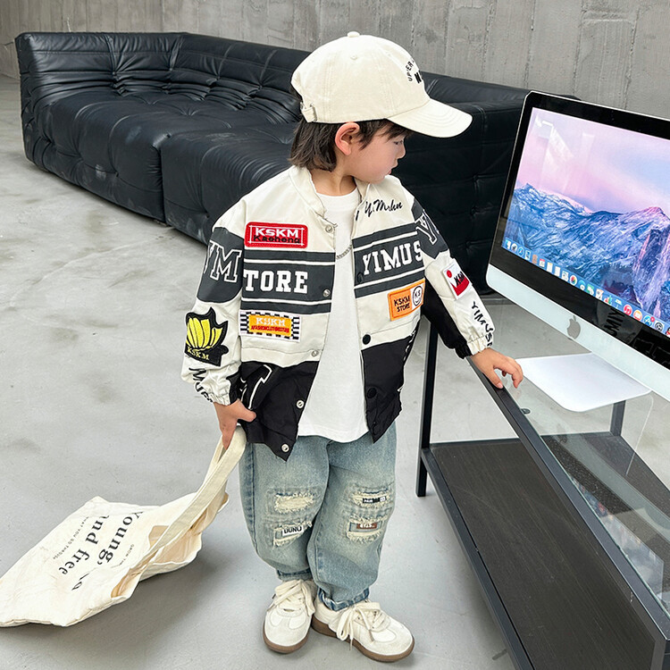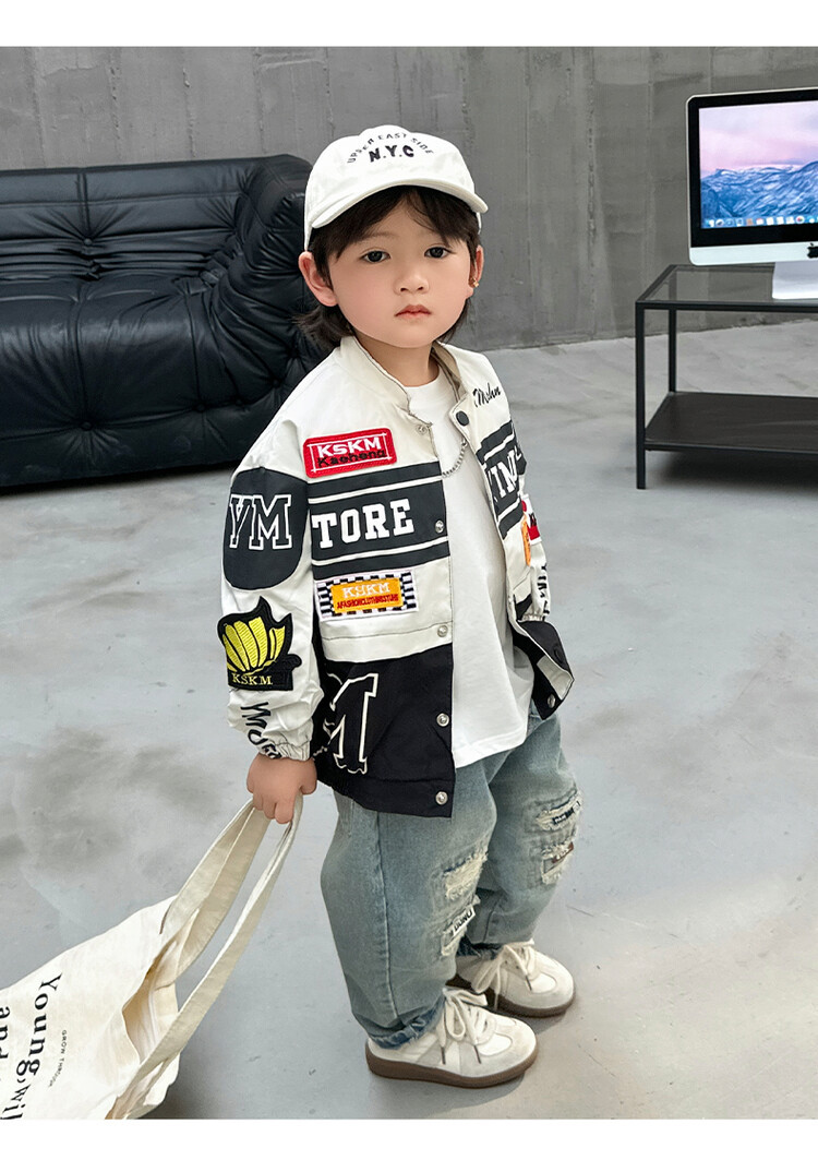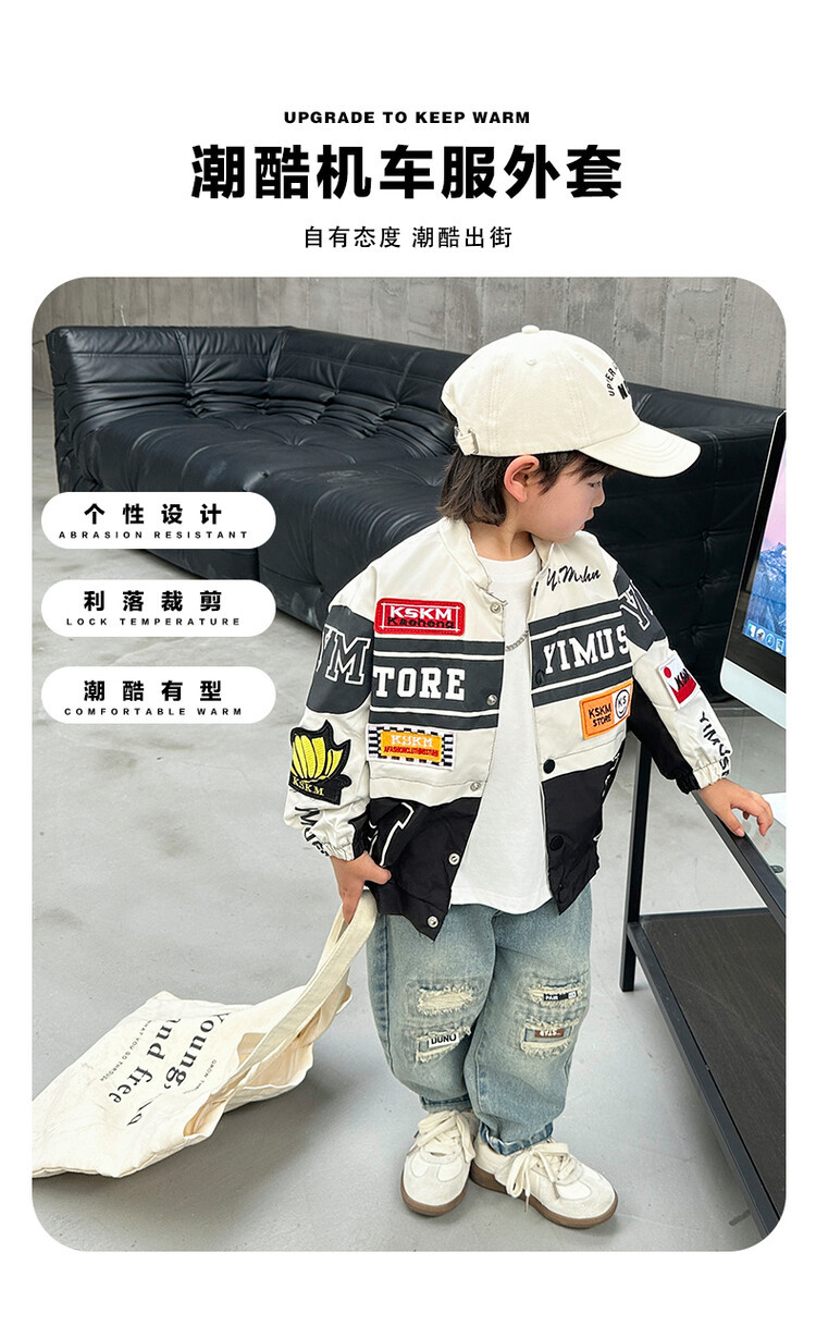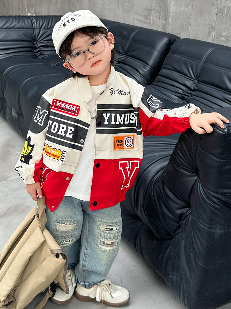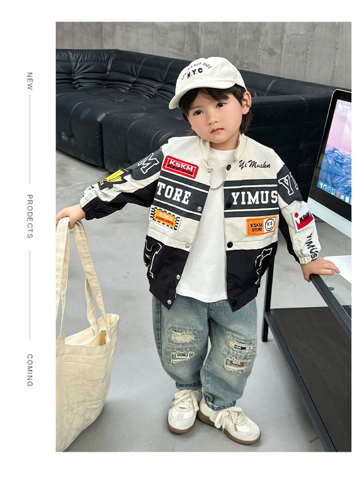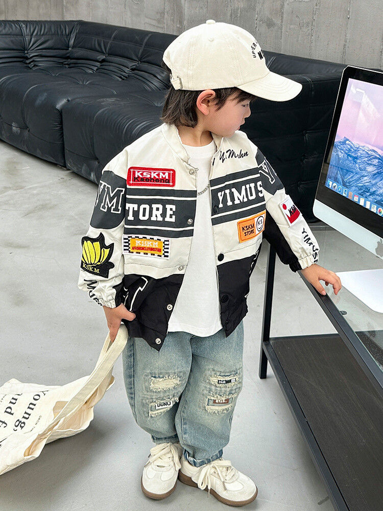 소년 오토바이 자켓 2024 봄과 가을 새로운 아이들의 잘 생긴 유행 재킷 미디어와 어린 아이들의 서양식 탑스토어 가기