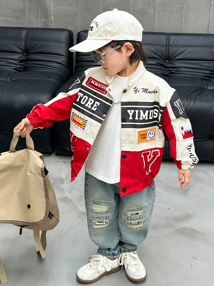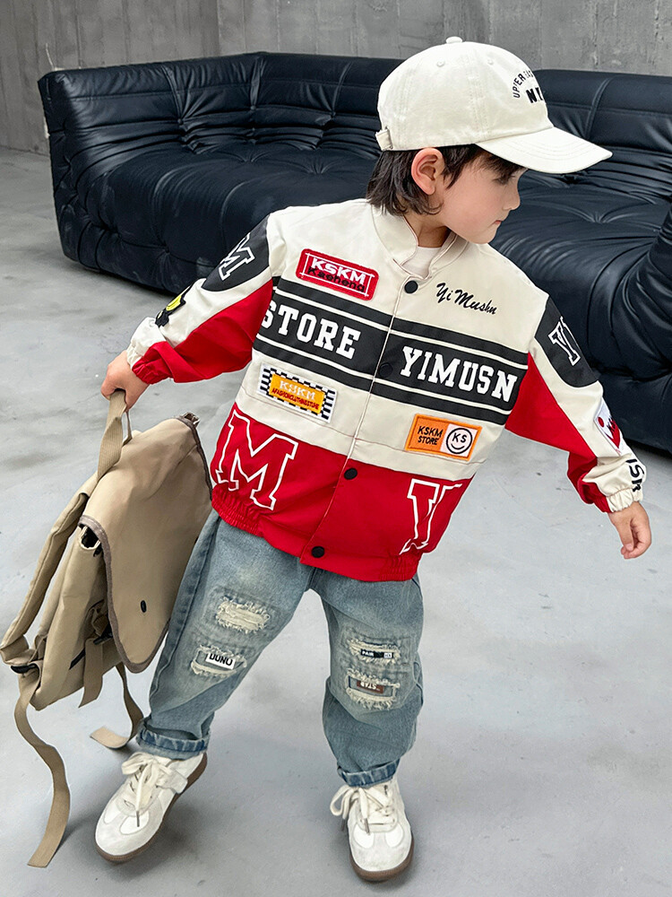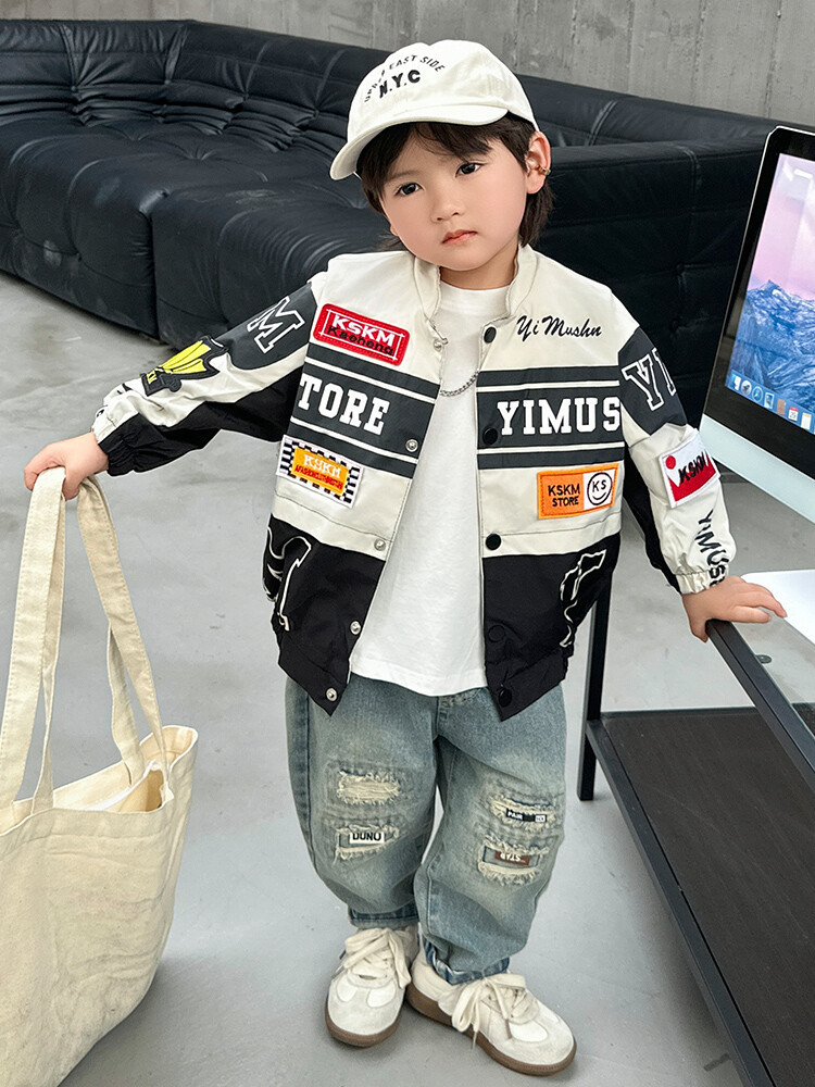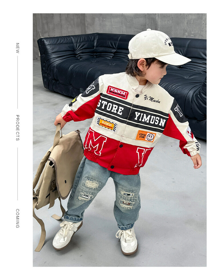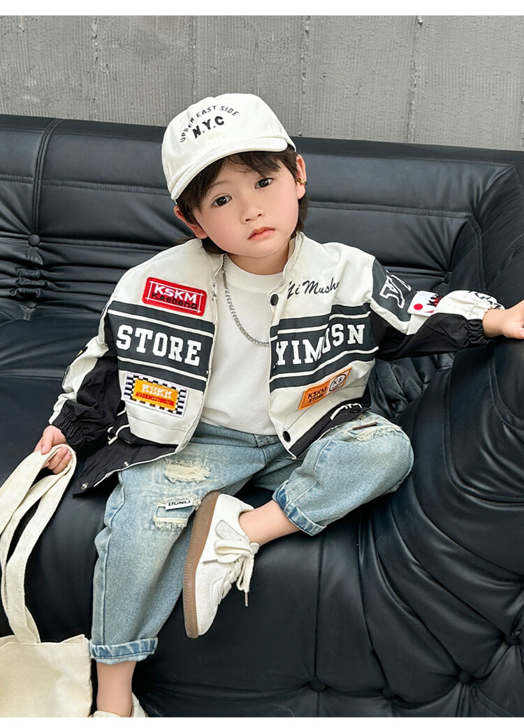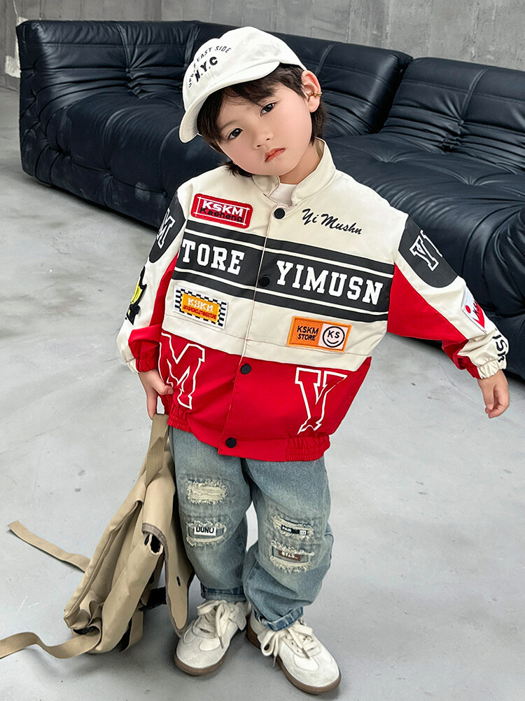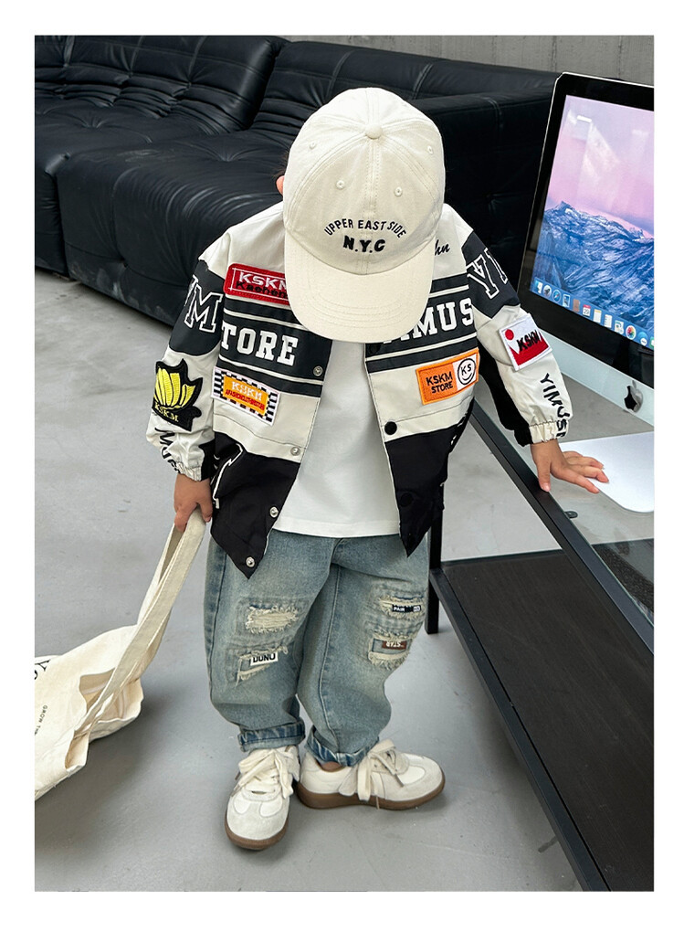 소년 오토바이 자켓 2024 봄과 가을 새로운 아이들의 잘 생긴 유행 재킷 미디어와 어린 아이들의 서양식 탑스토어 가기